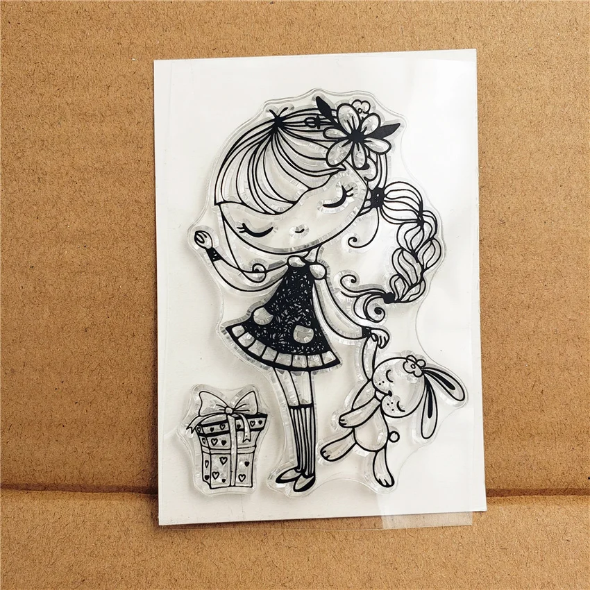 Прозрачные силиконовые штампы для девочек с кроликом для скрапбукинга, фотоальбома, декоративные прозрачные штампы