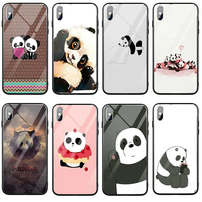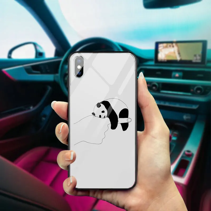 Забавный чехол с изображением панды и сердца для iPhone X XR XS 11 Pro Max 10 7 5 5S SE 6 6S 8 Plus, чехлы из закаленного стекла для телефонов с черным узором, чехол для телефона, противоударный чехол, защитный чехол для телефона