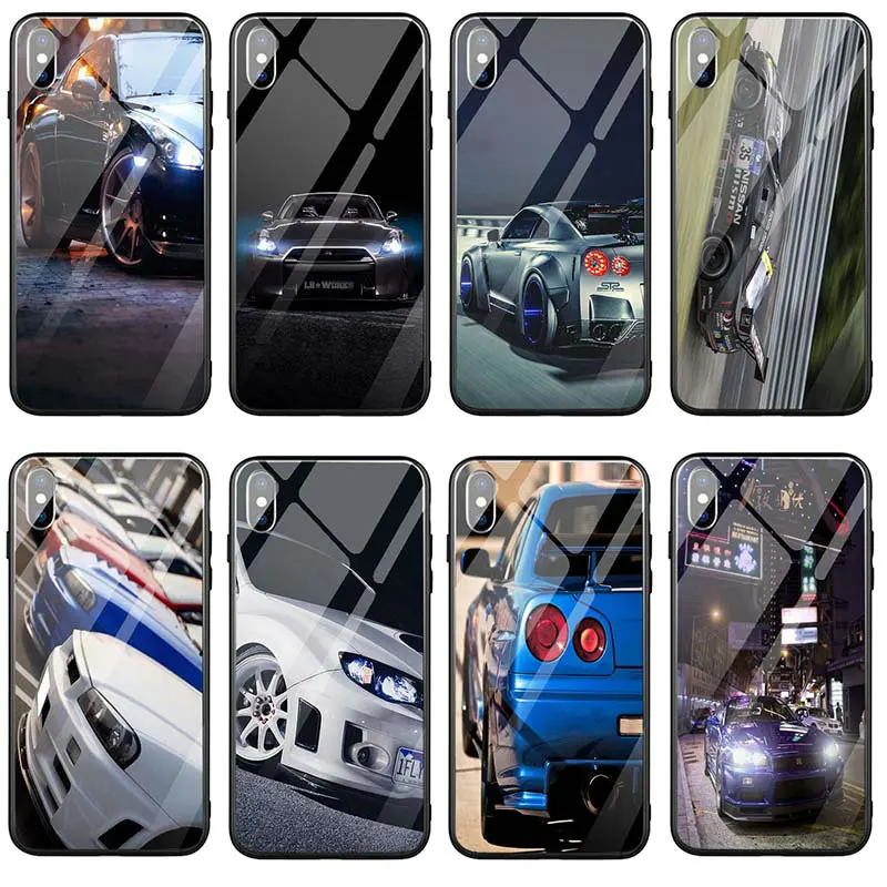 Чехлы для телефонов Nissan Skyline Gtr R34 из закаленного стекла для iPhone X XR XS 11 Pro Max 10 7 5 5S SE 6 6S 8 Plus, чехлы, чехол, черный узор, чехол для телефона, противоударный чехол, защитный чехол для телефона