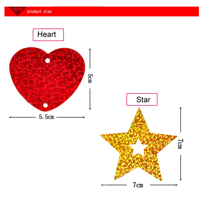 Размер: звезда: 7x7 см, сердечко 5x5 см