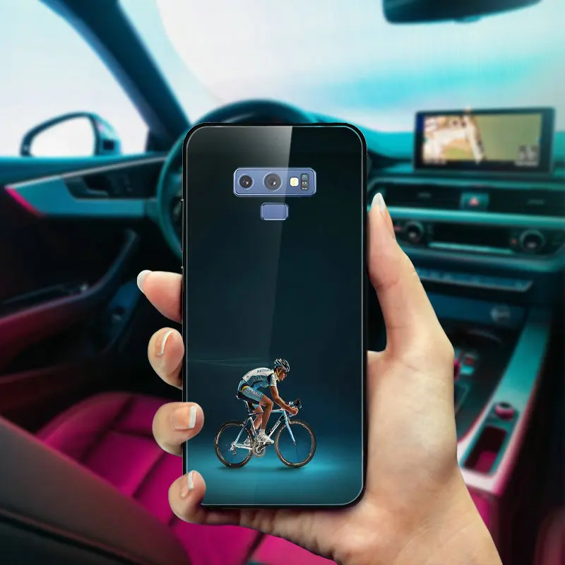 Bike Cyclist Black On White Tempered Glass Cases for Samsung Galaxy S8 S9 S10 A6 A8 A9 A10 A20 A40 A50 A70 A80 Plus Black Pattern Phone Shell Anti-knock Cover Protect Phone Case