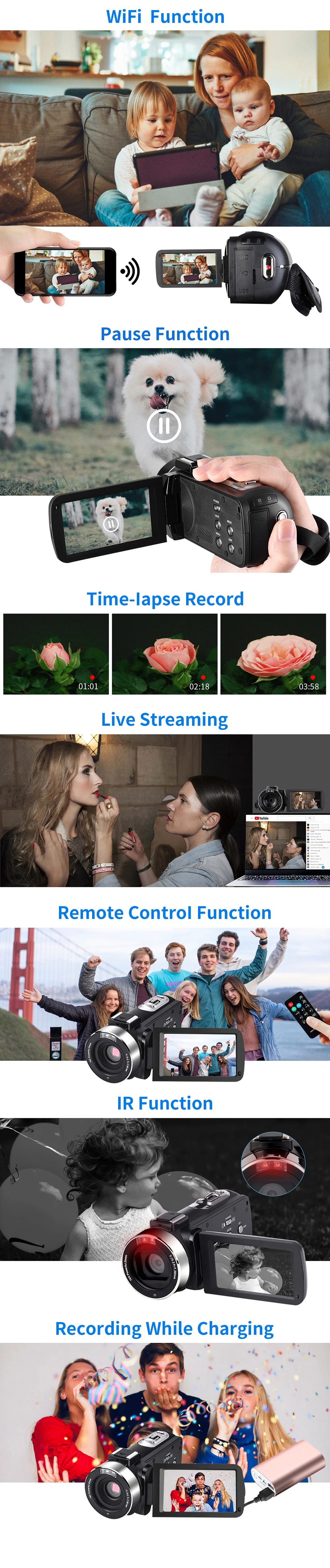 KOMERY 4K 48MP видеокамера 3,0 дюймов HD сенсорный экран/ночное видение/Wifi Внешний Микрофон/вспышка/HDMI выход/инфракрасный