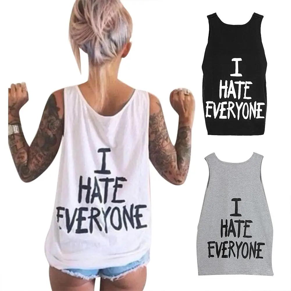 Повседневное Для женщин с круглым вырезом без рукавов, я не хочу всех письмо майки без рукавов с принтом топ, жилет Блузка