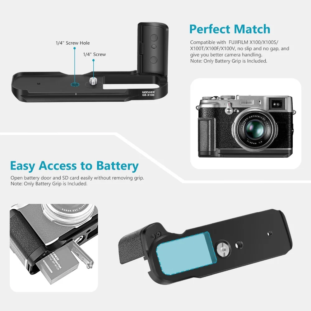 Neewer GB-X100 алюминиевый сплав рукоятка держатель Г-образный кронштейн Arca Swiss QR пластина Совместимость с Fujifilm беззеркальная камера X100S/x100T/X100 камеры