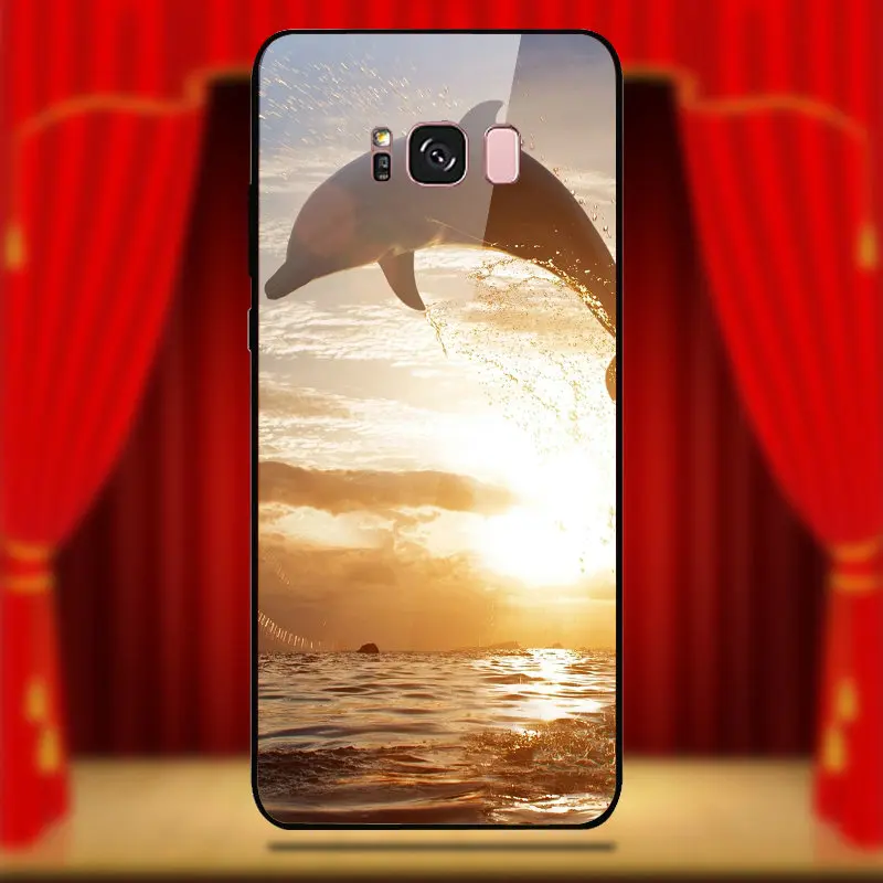 Sea Animal Dolphin для Samsung Galaxy A6 A8 A8S A9S S8 S9 S10 Plus, чехол из закаленного стекла, мобильный телефон, чехол, черный узор, чехол для телефона, противоударный чехол, защитный чехол для телефона