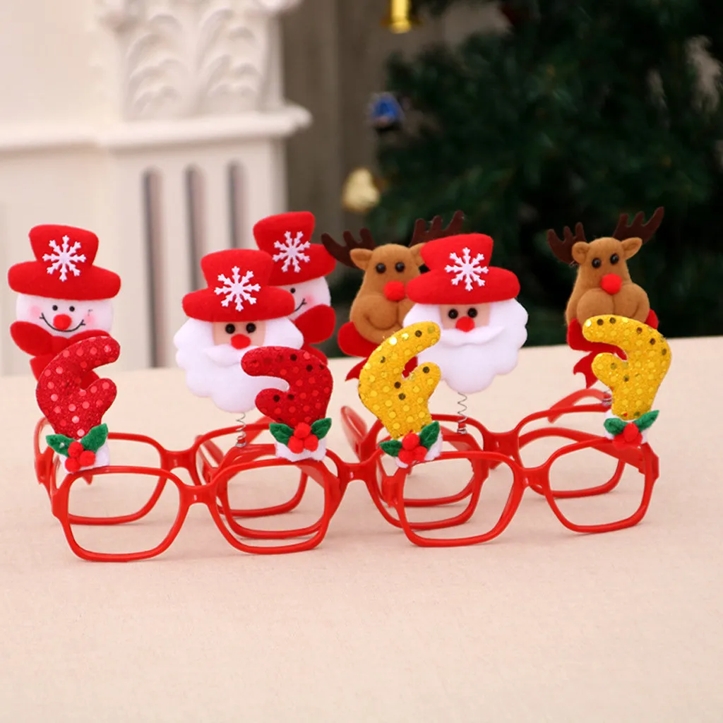 Комплект из 4 предметов на Рождество Милые Мультяшные очки, оправа, блестящие очки, без линз, рождественские вечерние украшения
