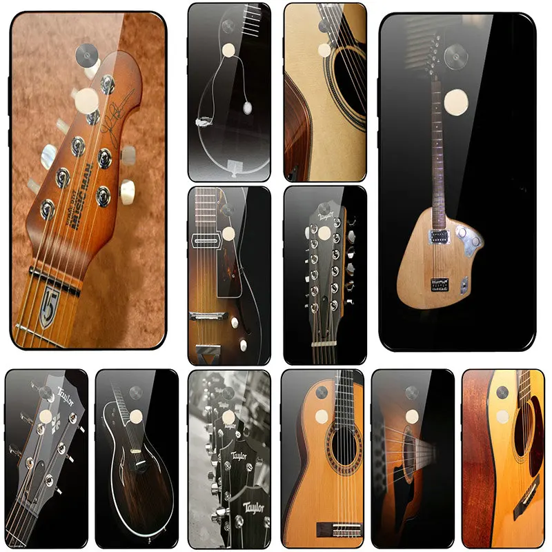 Tempered Glass Phone Cases Fundas for Xiaomi Mi Redmi Note 4 4X 5 5A 7 7A 8 8A 9 SE A1 A2 Plus Lite Bags Taylor Guitar Black Pattern Phone Shell Anti-knock Cover Protect Phone Case