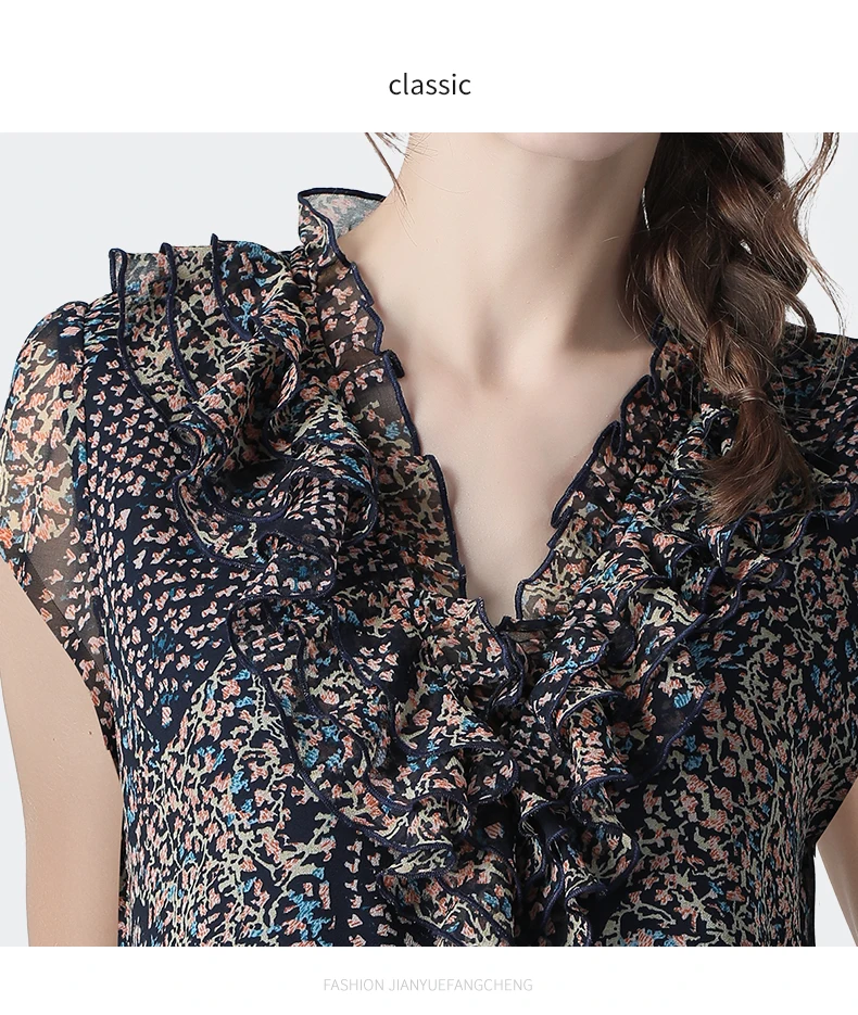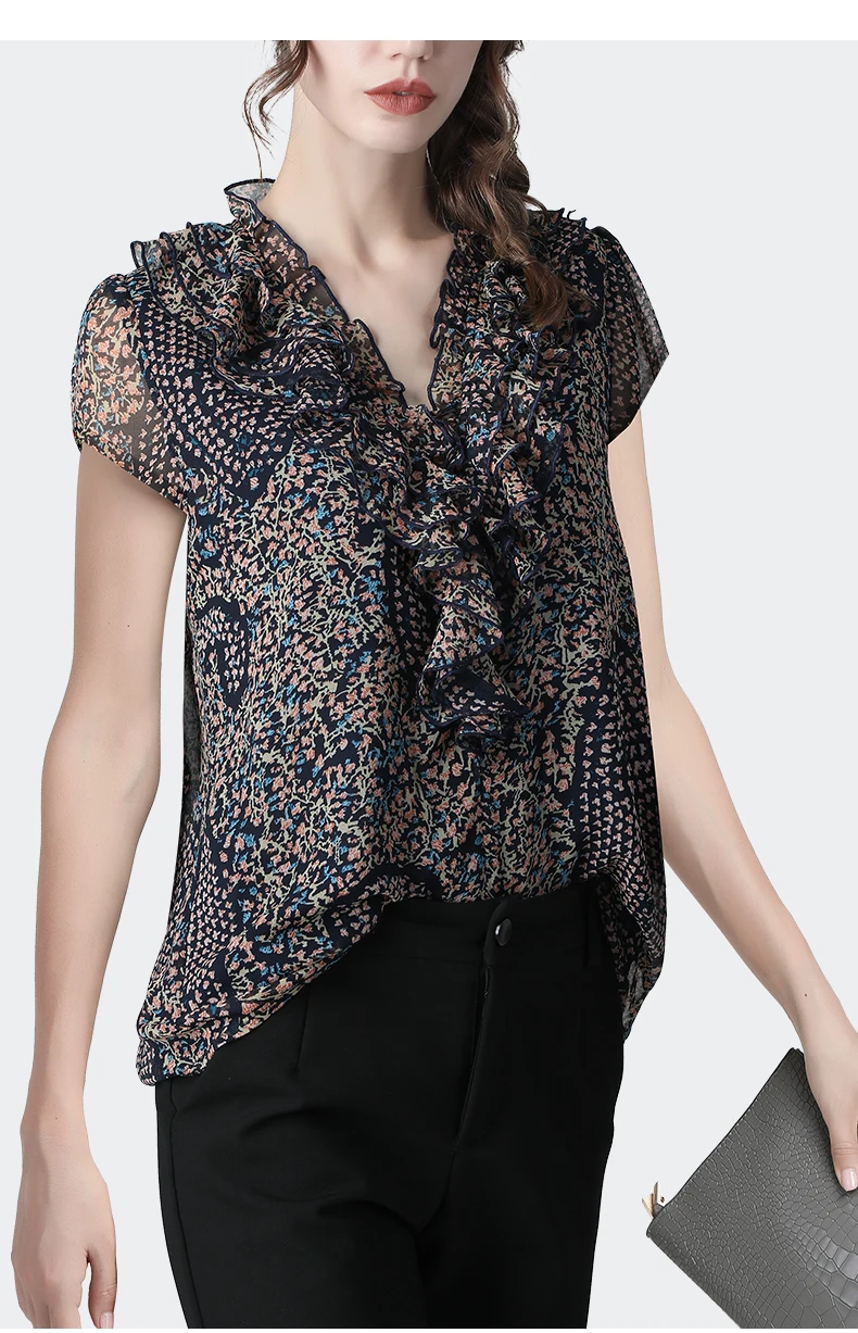 Изготовлено из удобной шифоновой ткани с принтом, мягкая и удобная, слегка и естественная, приятная для кожи и дышащая