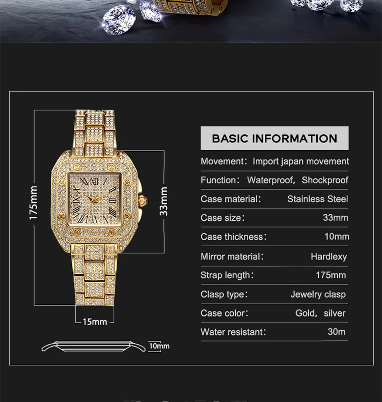 MISSFOX Топ бренд часы для мужчин Bling Diamond квадратные римские цифры водонепроницаемые часы подарок Прямая поставка 2020 лучшие продажи
