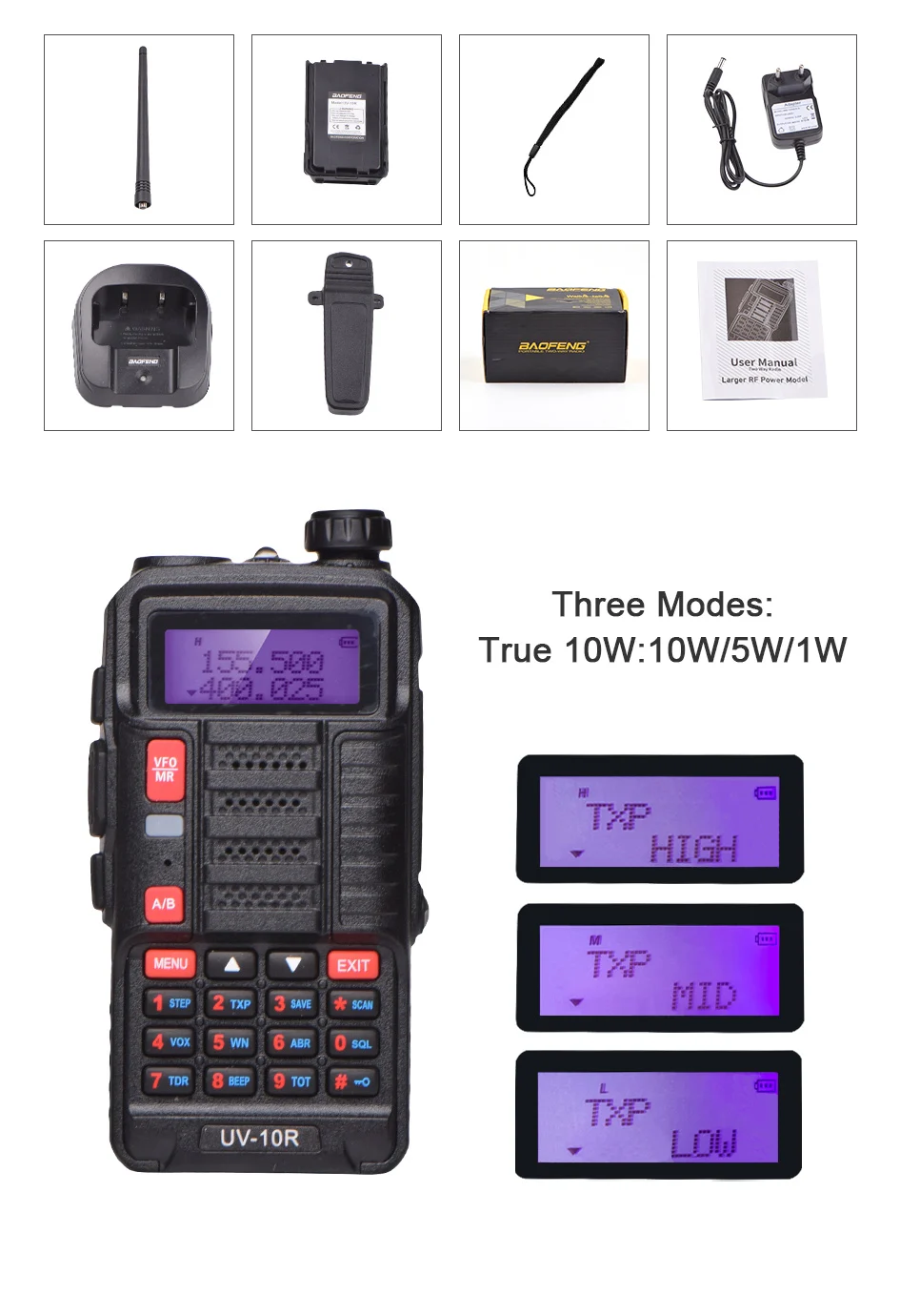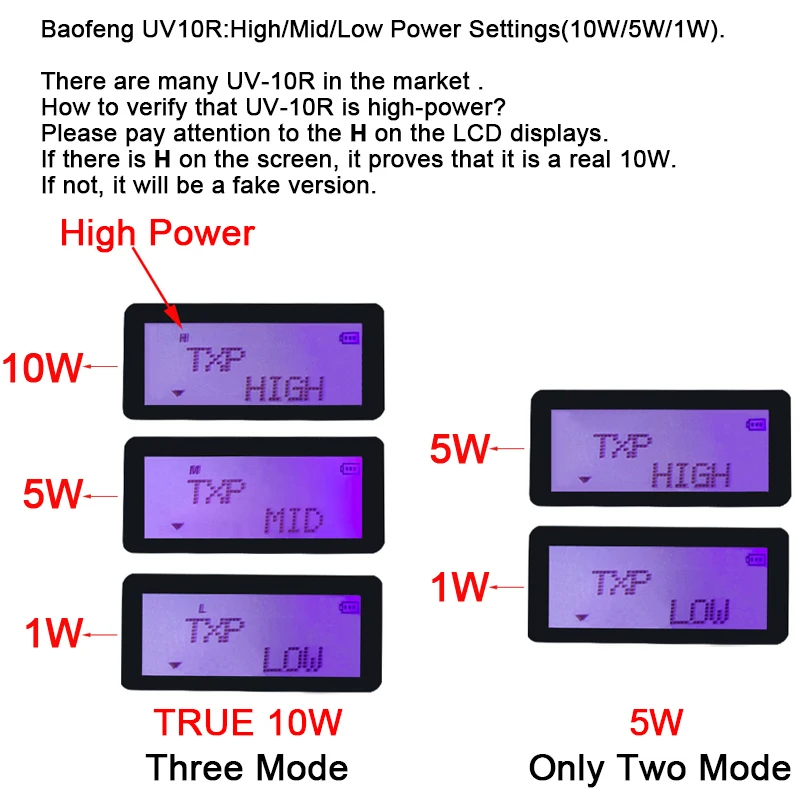 Baofeng UV10R: высокая/Средняя/низкая мощность (10 Вт/5 Вт/1 Вт).