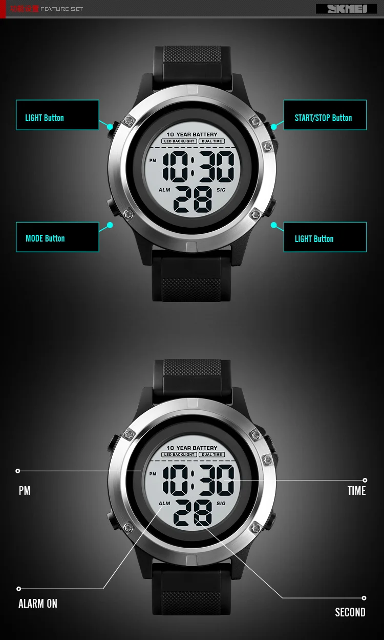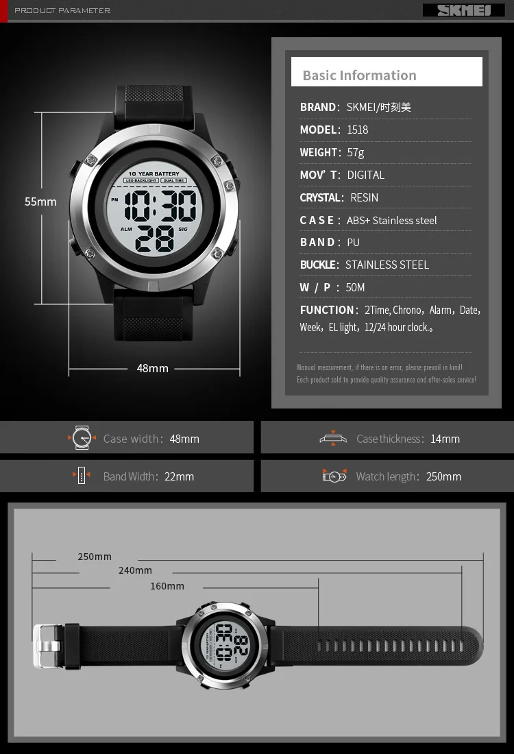 SKMEI креативные спортивные часы с батареей super life светодиодный дисплей цифровые часы Секундомер Будильник мужские часы Relogio Masculino 1518