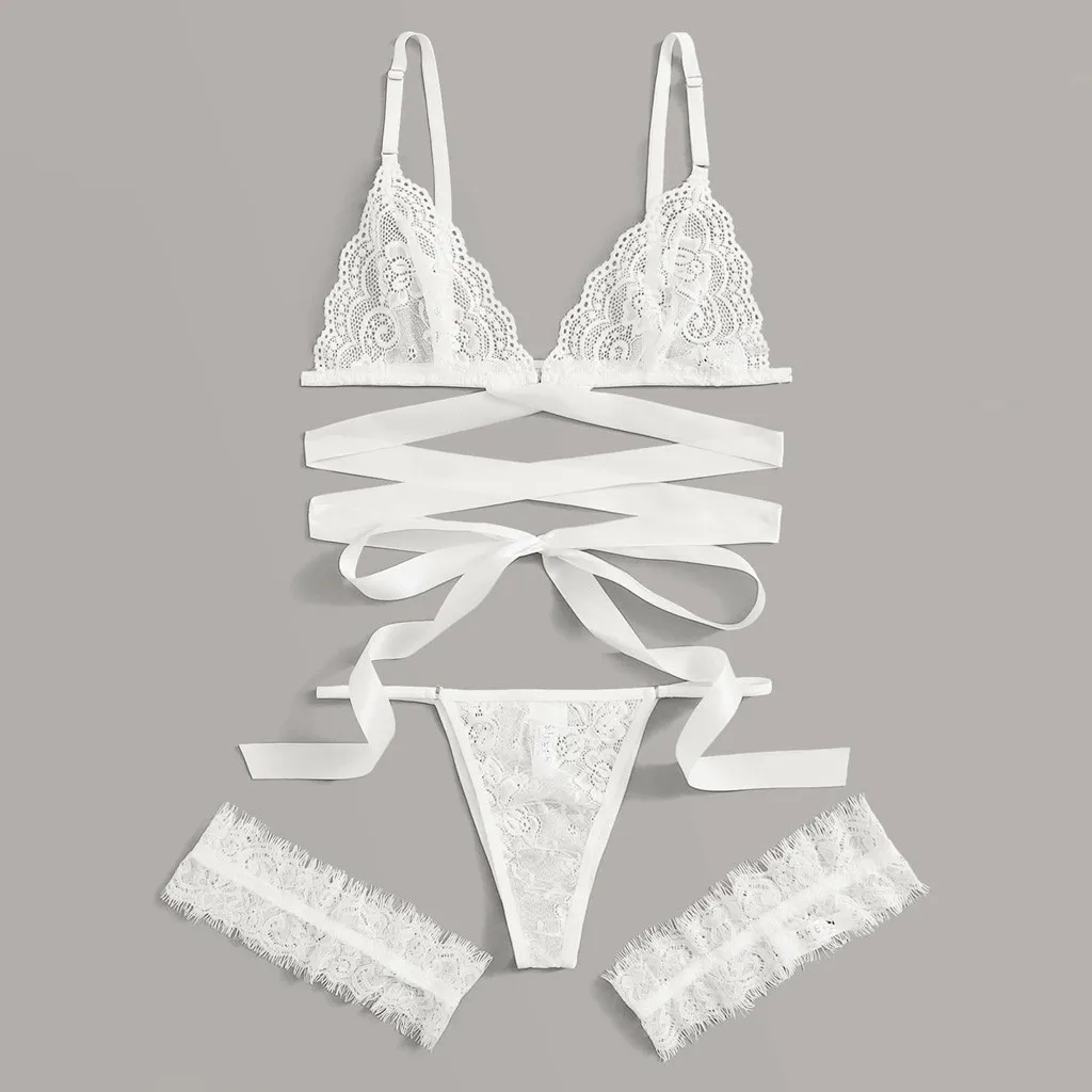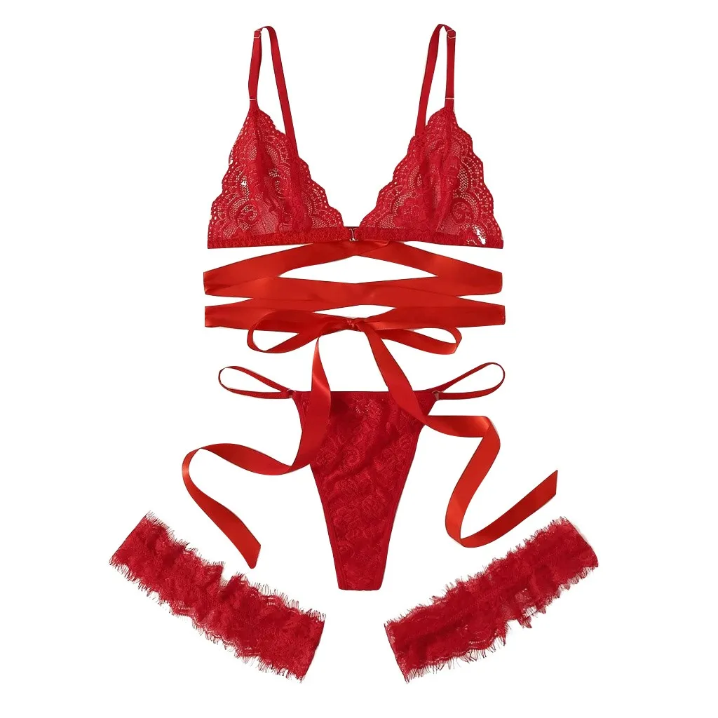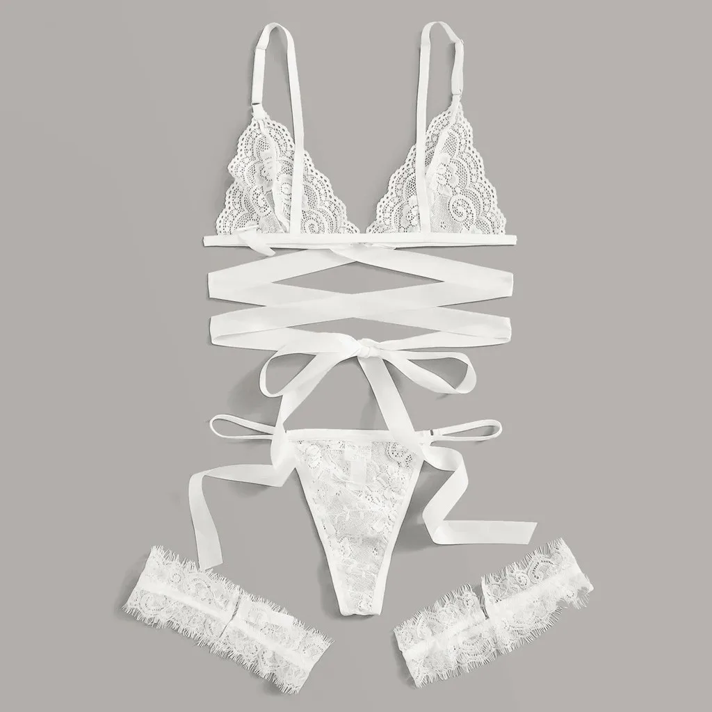 Женское кружевное нижнее белье большого размера с кольцом для ног, комплект нижнего белья с бюстгальтером-стринги, одежда для сна