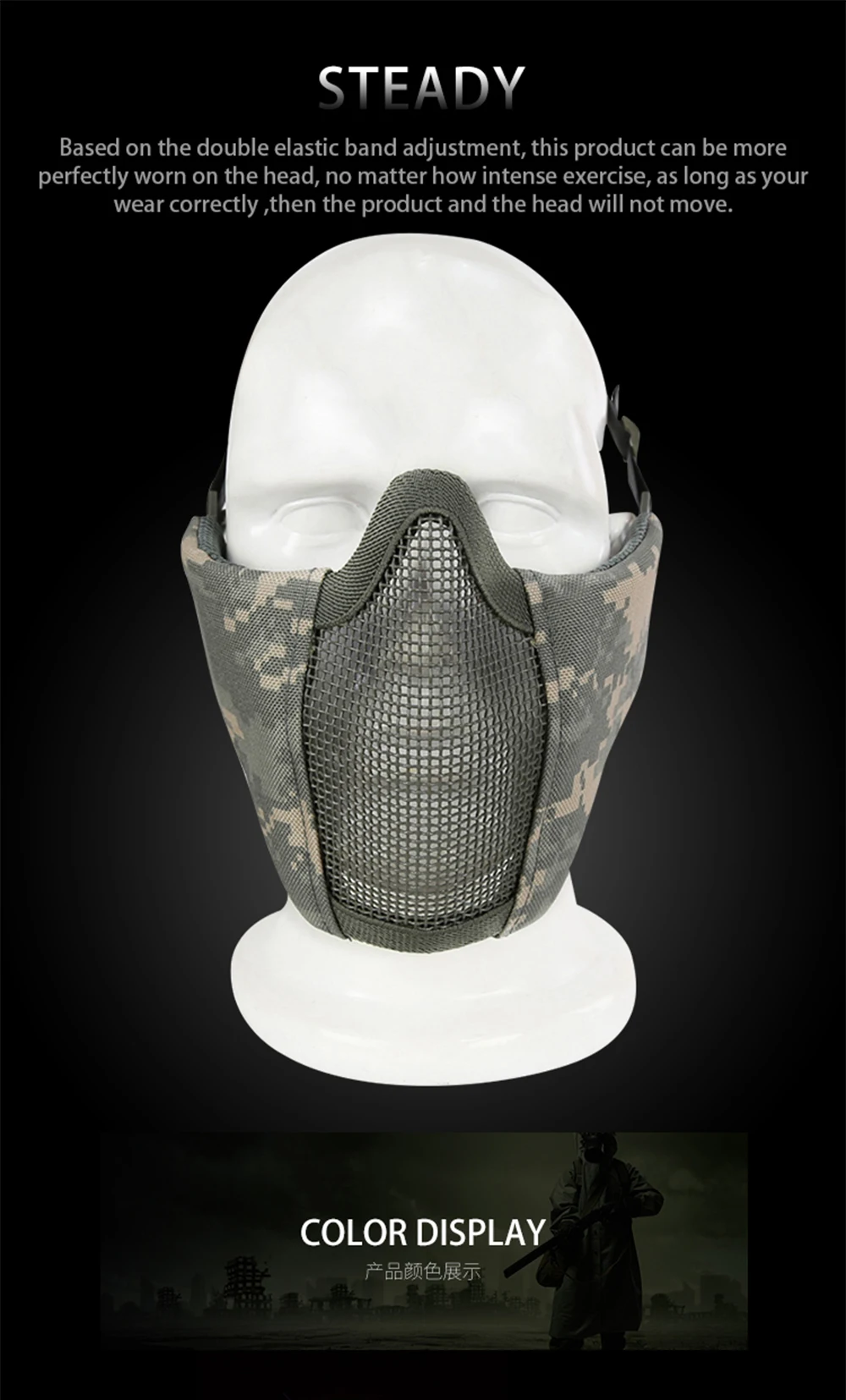 Lightweight: 3.35oz Weight lower half face mask, Wearing it on your head, you can nearly ignore it and very breathable