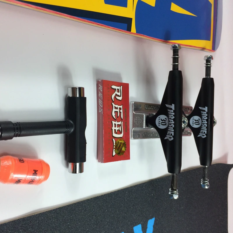 1. Набор скейтбордов включает в себя все аксессуары. Продавцы могут прикрепить грейпленты для установки колес и подшипников перед отправкой. Однако винты, соединяющие скейтборд и грузовик, должны быть установлены покупателем после получения товара. Это может уменьшить объем доставки и фрахт. Гвозди и инструменты для установки, необходимые для скейтборда, предоставляются продавцом. 2 скейтборда колеса и грейпсет и грузовик стили могут быть выбраны, скажите продавцу ваш любимый цвет, если нет, продавец будет случайным образом совпадать