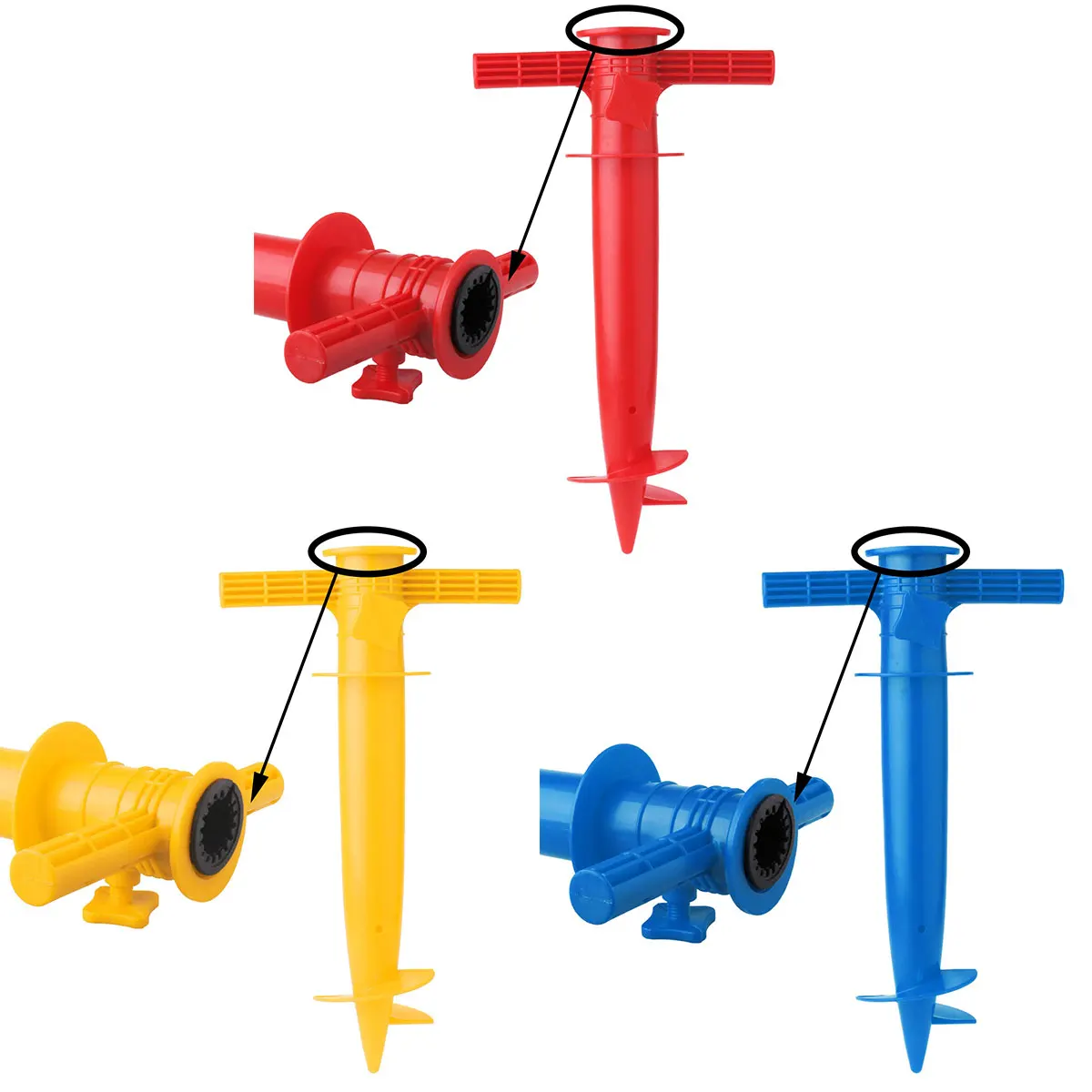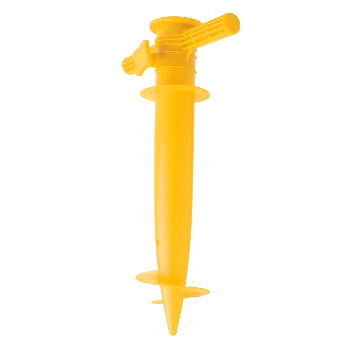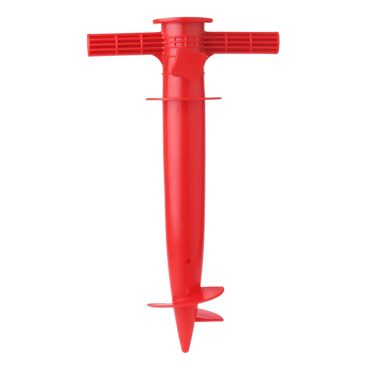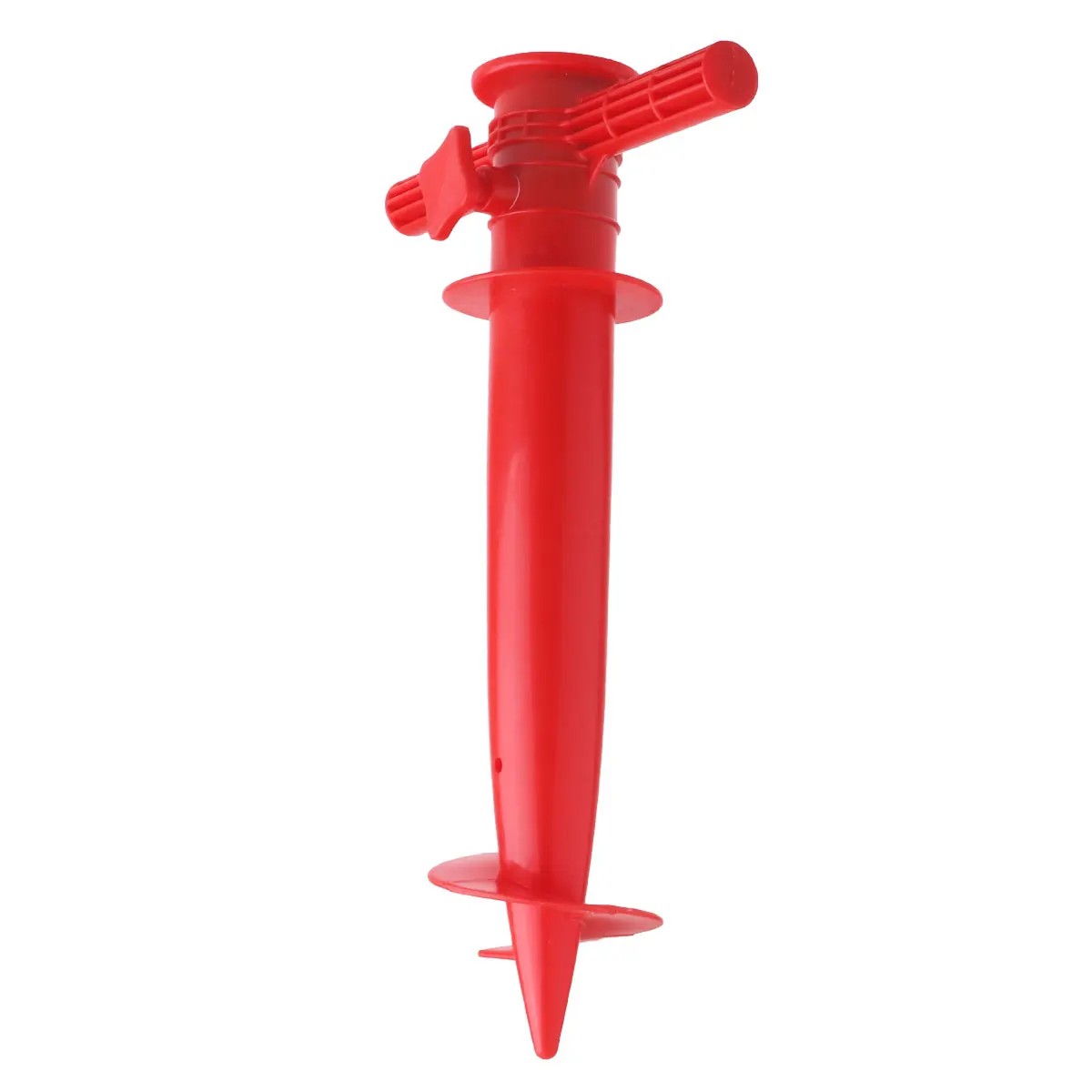 Beach Umbrella Sand Ground Anchor Spike Umbrella Stretch Stand Holder. Made of high quality plastic, not easy to aging, innovative designs, reliable quality. Simply screw the auger into the sand, dirt or grass, place your umbrella in the base holder, tilt accordingly, and enjoy. Using in sand or loose soil, good for sun umbrella, beach umbrella, umbrella racks base purposes. A good tool to fix the sun beach umbrella, keep your beach umbrella from blowing away, make you enjoy your beach time.