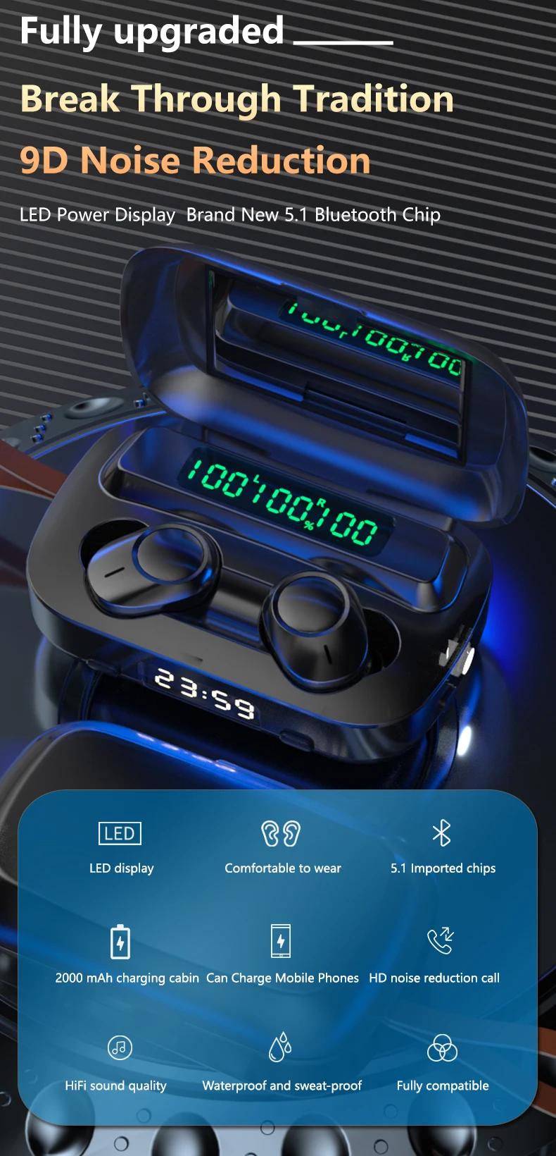 2020 Новое поступление беспроводные наушники TWS Bluetooth 5,1 наушники 2000 мАч Зарядка 9D стерео спортивные водонепроницаемые наушники гарнитуры