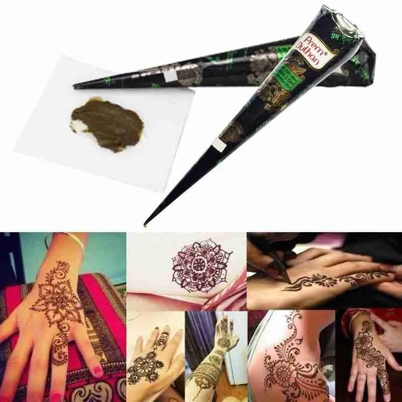 Водостойкая индийская паста из хны, временная татуировка, коричневая краска для тела, художественный крем из хны, конус для трафарета, менди, боди-арт