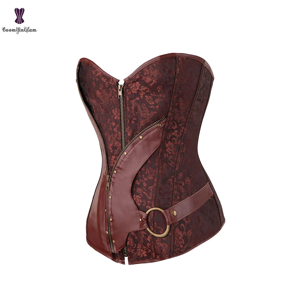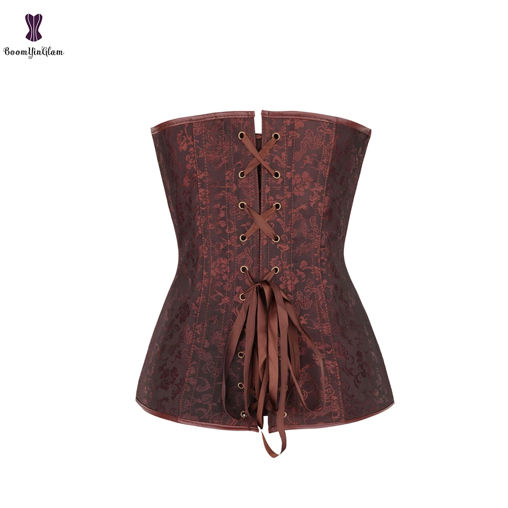 Женский Готический корсет в стиле стимпанк с завышенной талией, тренировочный корсет размера плюс коричневого цвета, готический корсет