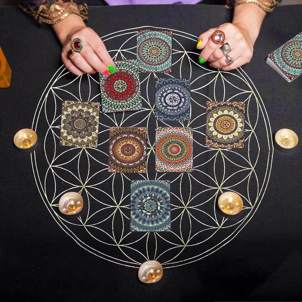 Мягкая легкая скатерть для карт Таро «цветок жизни» с кристаллами и решеткой, настольная скатерть