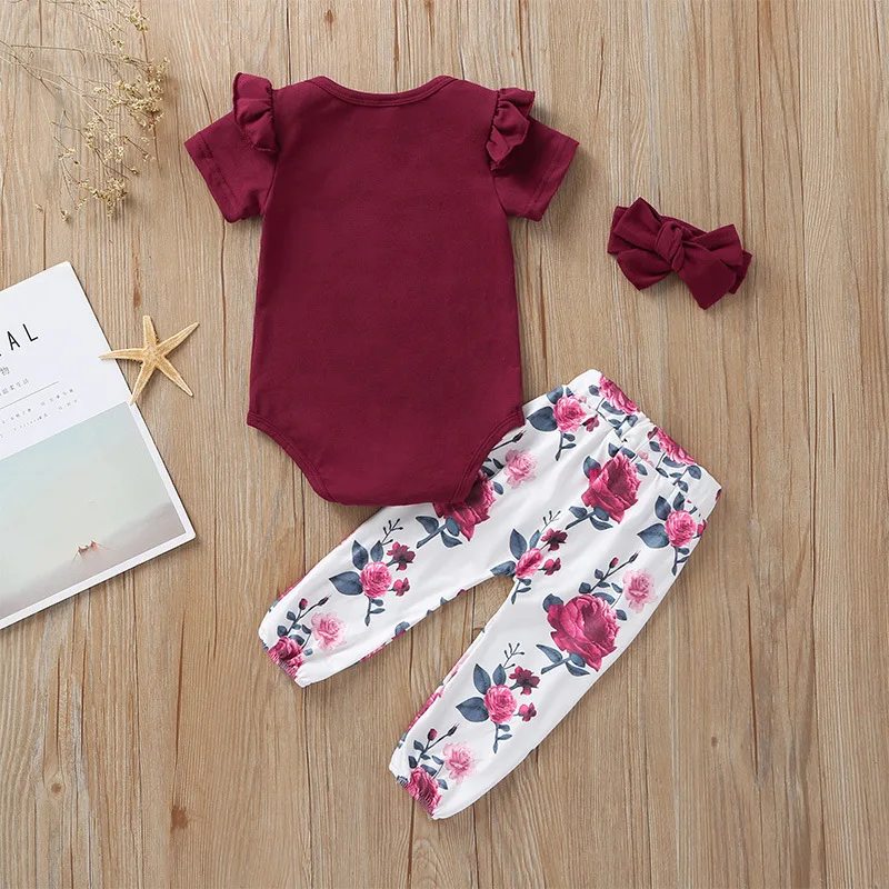 Одежда для новорожденных девочек от 0 до 24 месяцев 2020 г., Летние Осенние Топы с рукавами-крылышками + штаны с цветочным принтом + повязка на голову, комплекты из 3 предметов одежда для маленьких девочек
