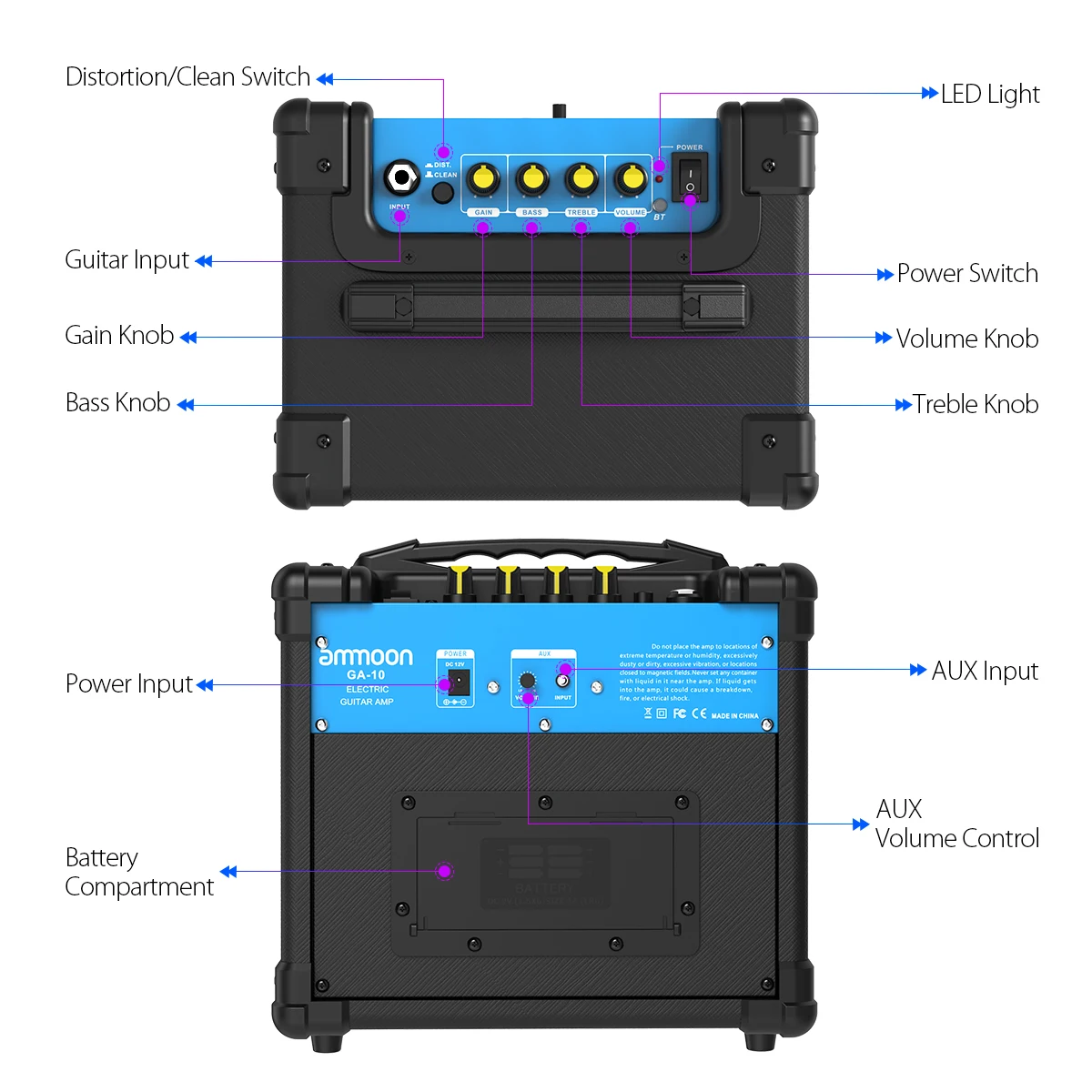 10 Вт портативный усилитель для электрогитары с режимами очистки/искажения, обеспечивает мощный и универсальный ЗВУК гитары.