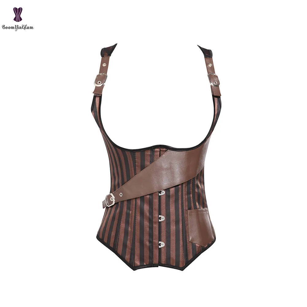 Женский Ретро Готический стимпанк корсет под грудь Коричневый корсет для тренировок