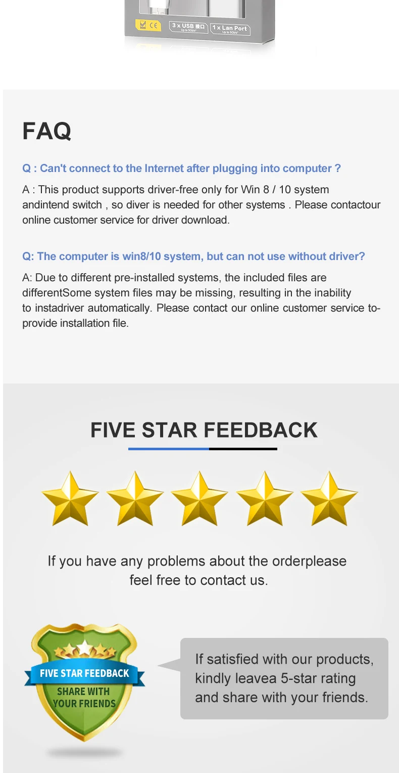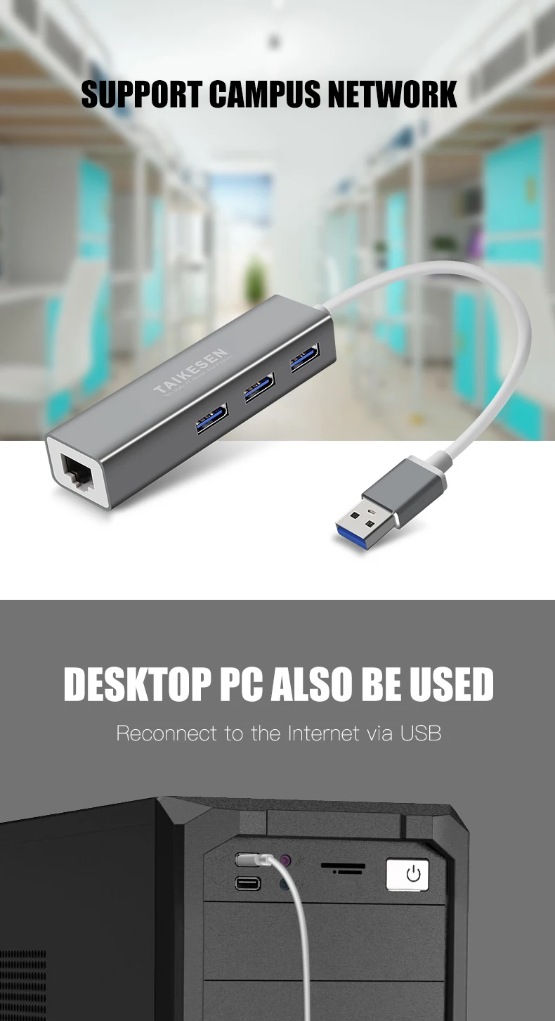 USB Ethernet с концентратором 3,0 Спецификация Gigabit Ethernet -Поддержка доступа к сети 10/100/1000 Мбит/с; -Поддерживает режим приостановки и удаленное Пробуждение через link-change, Magic Packet, рамку пробуждения Microsoft и внешний контакт пробуждения; -Поддерживает полный и полудуплексный режимы работы; Концентратор USB 3,0 -Удлините 3 порта USB 3,0, удобно для флеш-накопителя, клавиатуры, мыши, камеры, принтера, жесткого диска и т. д.; -Поддержка скорости до 5 Гбит/с; -Обратная совместимость с USB 2,0 и 1,1; -Дизайн с разъемом постоянного тока для энергоемких устройств. Без драйвера Windows8 Windows10 MacOS Требуется Dreiver Windows 7 Windows XP Windows Vista Linux