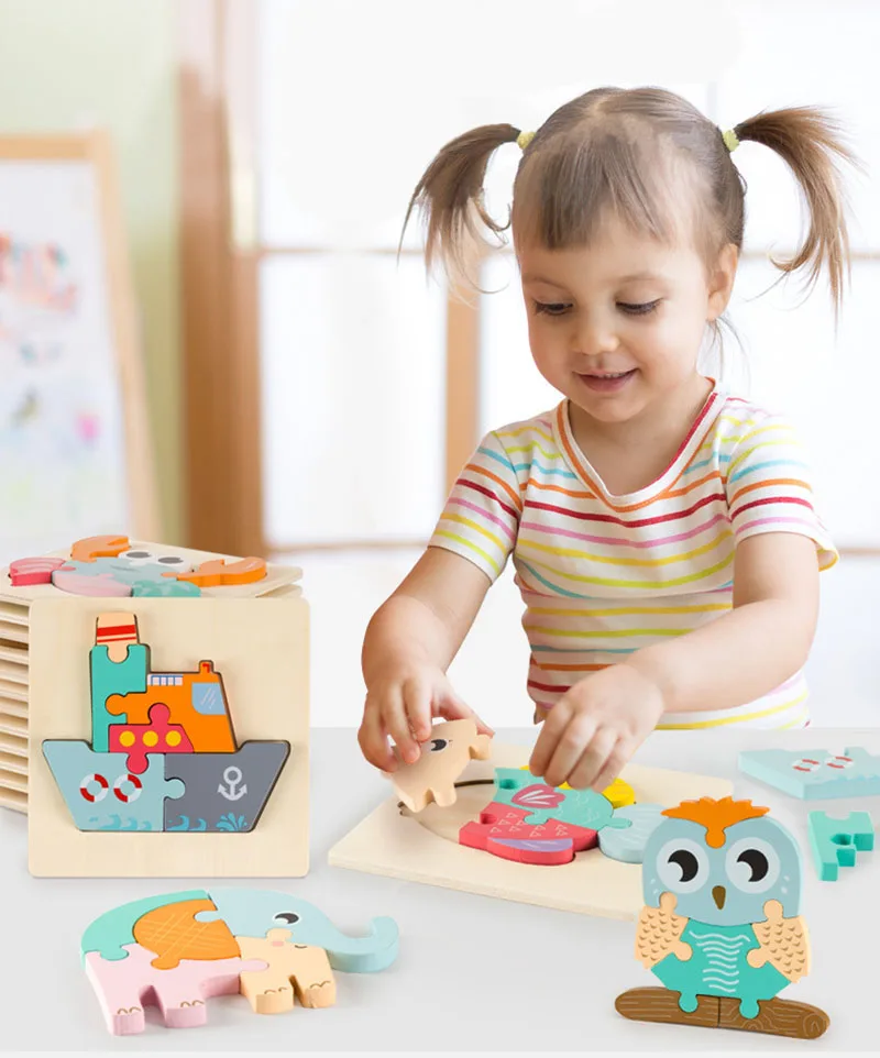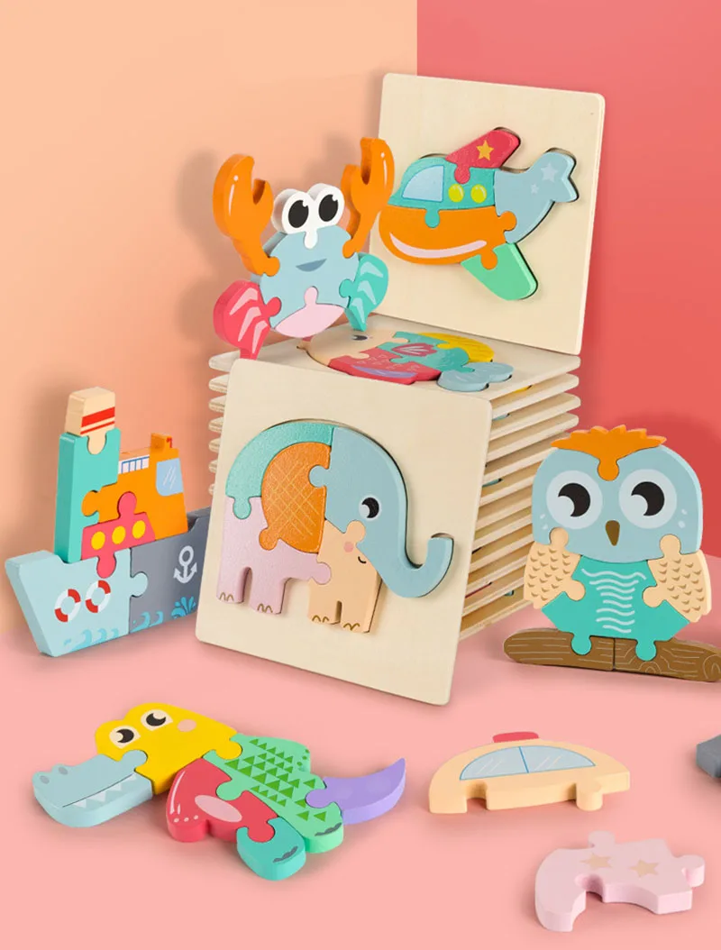 Детские деревянные развивающие игрушки Монтессори, 3D пазл, животные, интеллект, дети, головоломка для мозга, Детские Танграм формы обучающий пазл