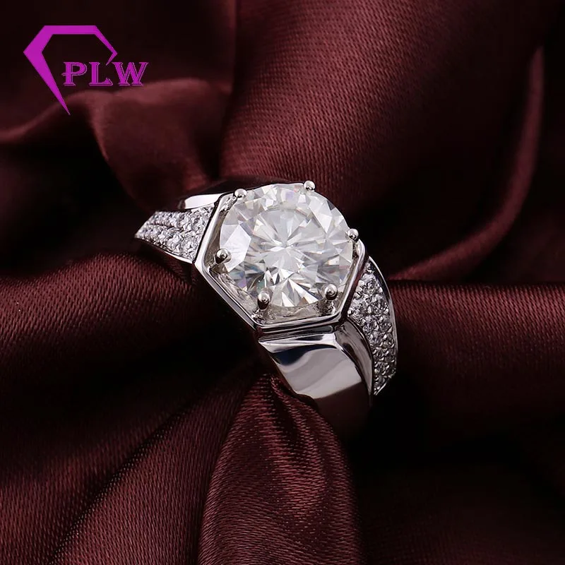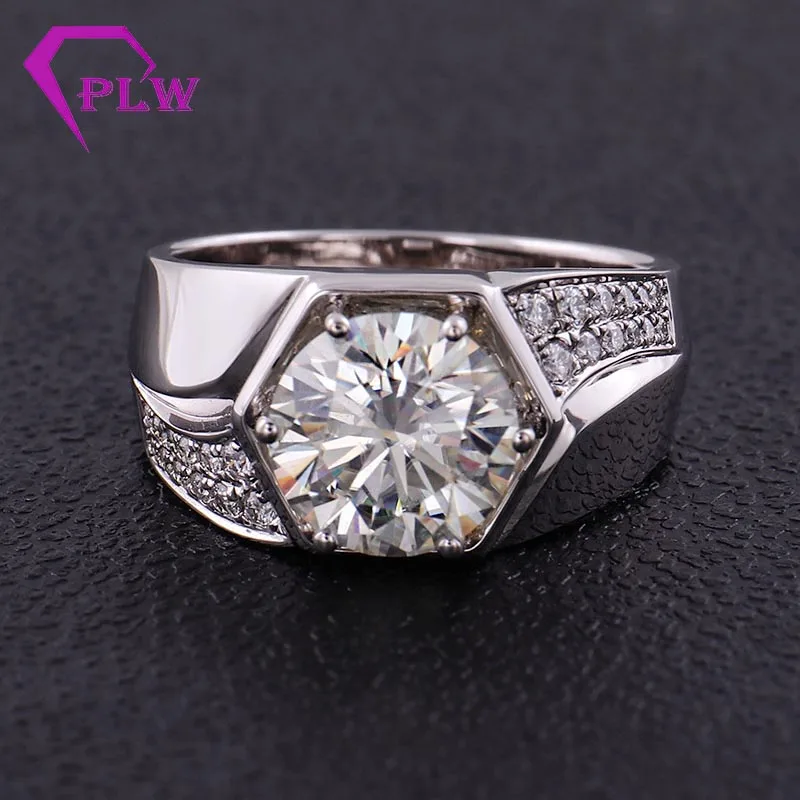925 стерлингового серебра Для мужчин кольцо 3ct 9 мм круглый Melee Муассанит кольцо классический Стиль алмаз Ювелирное Украшение регулируемое кольцо группа человек кольцо