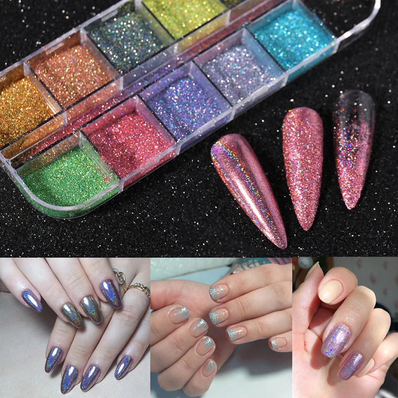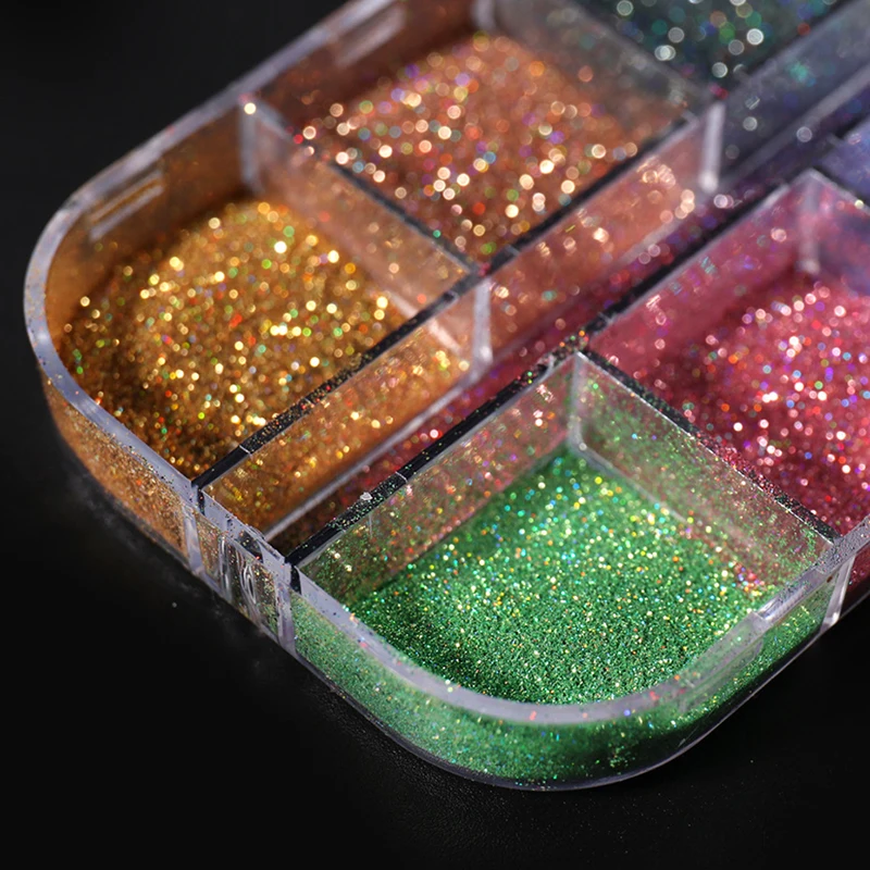 Наборы блестящих порошков для ногтей 12 ячеек/1 коробка