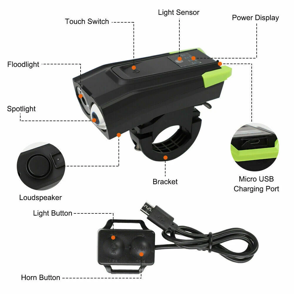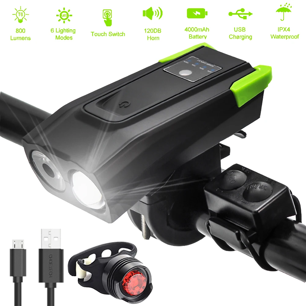 Литиевые аккумуляторы 2000/4000 мАч, перезаряжаемые велосипедные фонари USB, экологически чистые