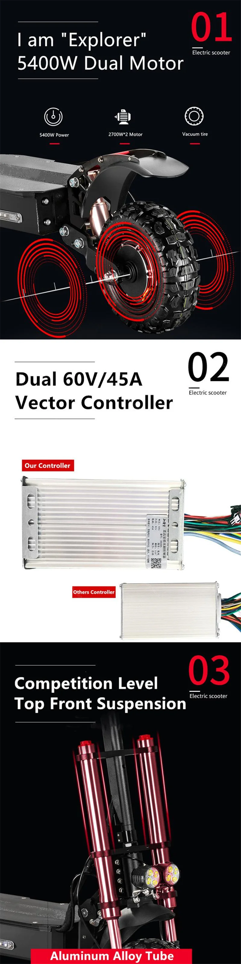 Новый мощный электрический скутер 5400 Вт 60 в 85 км/ч электрические скутеры двойной привод складной внедорожный Электрический скейтборд скутер