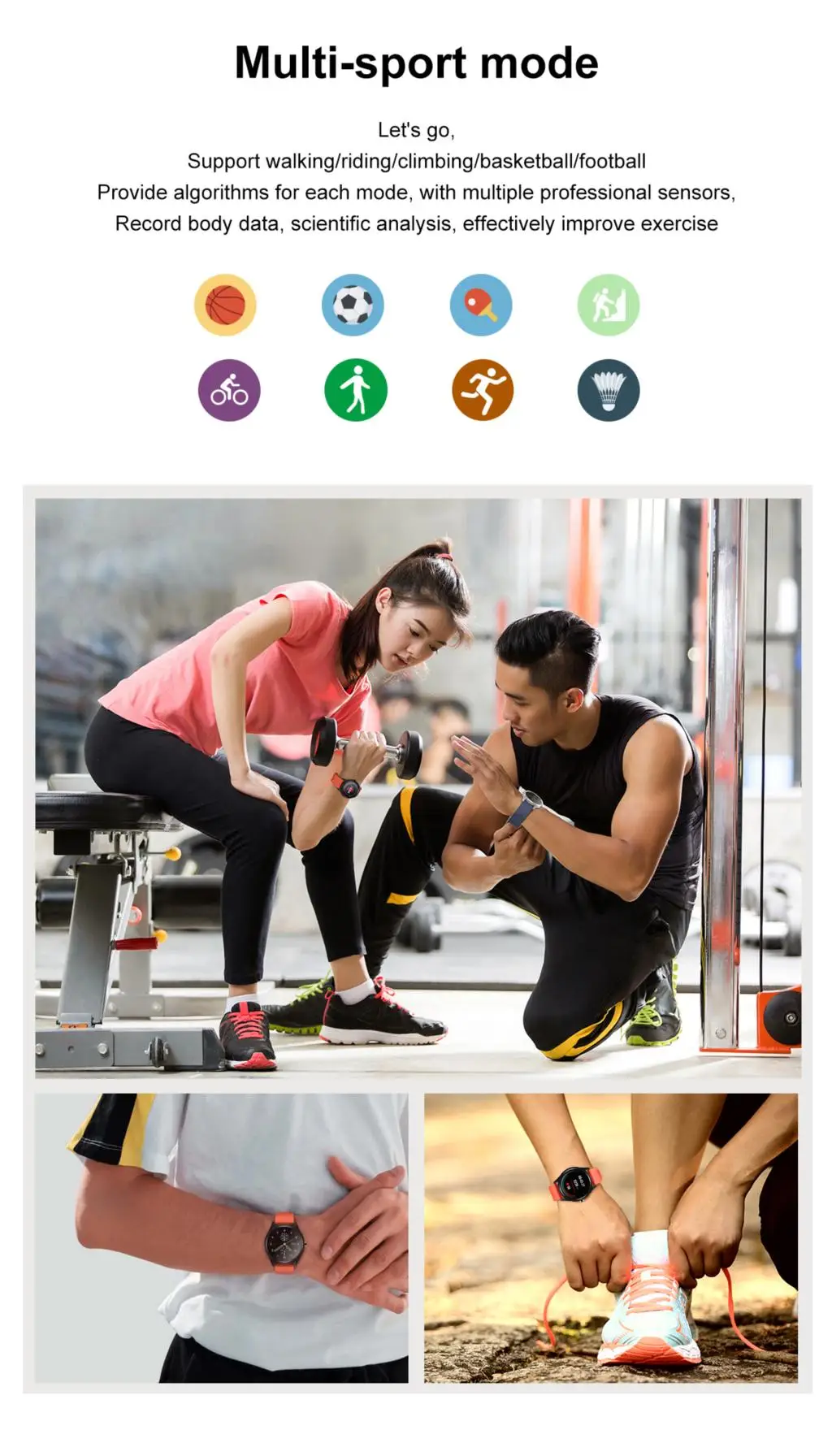 * Мульти спортивный режим: ходьба, бег, езда, бадминтон, баскетбол, футбол, скакалка