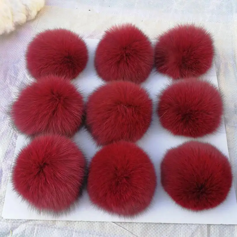 Fur Material:100% real fox fur head Packing: 9 pieces/lot Size: 8cm to 9cm Ending: elastic loops If you want different colors, please leave message to me. If no message, i will send 9 pieces in same color. Tip: In reality, the fur ball is not so round. You need to know!