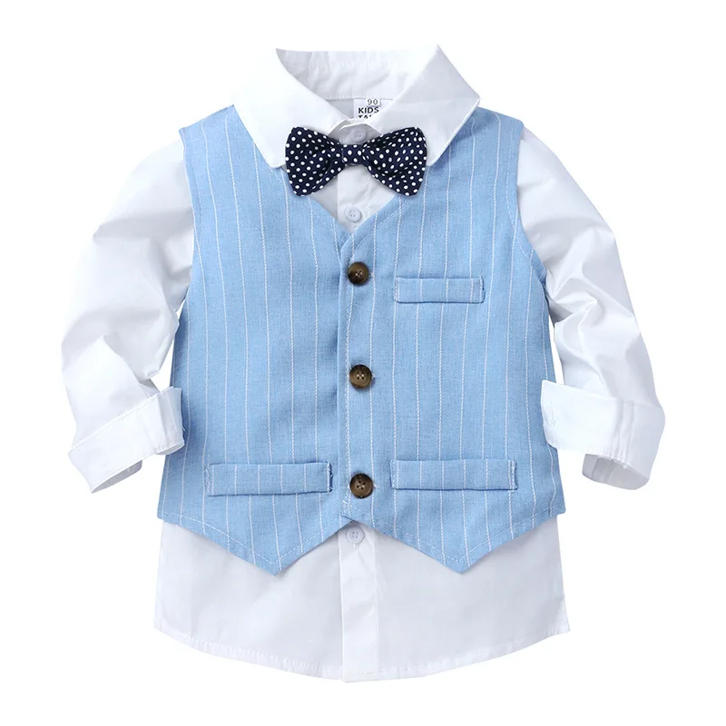 Baby Set Boy Dress Suit; T Shirt Vest Pants; Toddler Kids Boys Bow Tie Clothes