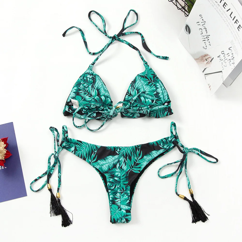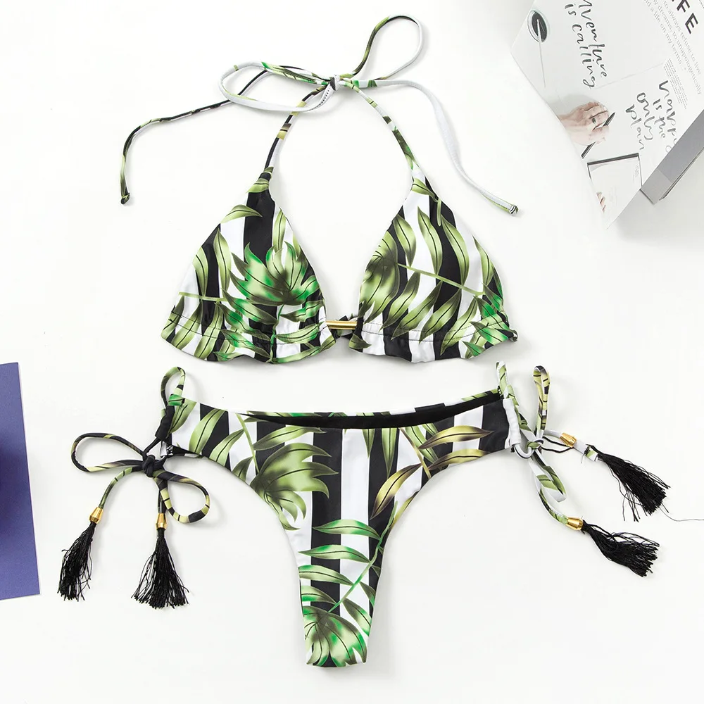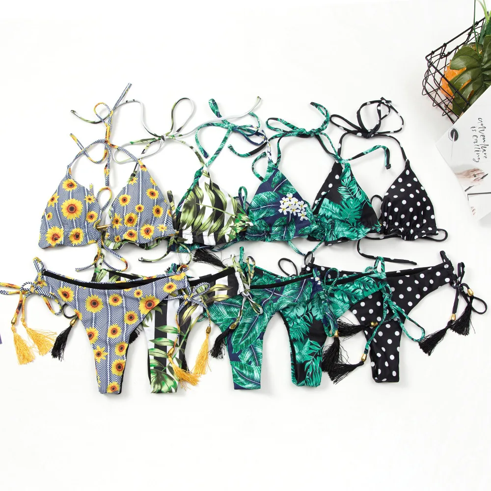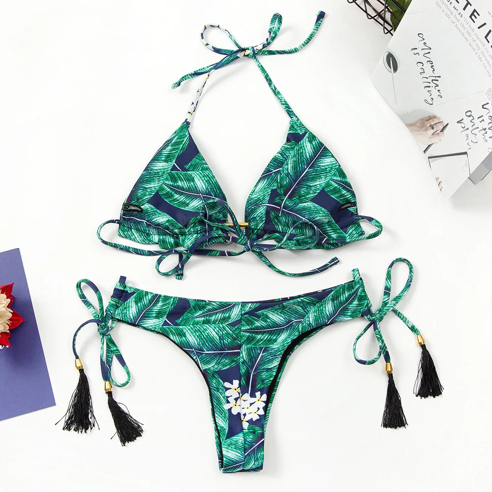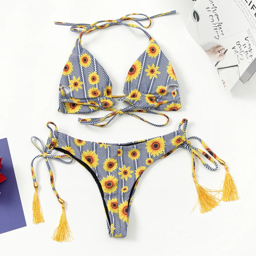 Новый сексуальный женский комплект бикини с цветочным принтом, купальный костюм из двух частей, купальник, пляжный костюм, Бразильский бикини, купальник, пляжный костюм
