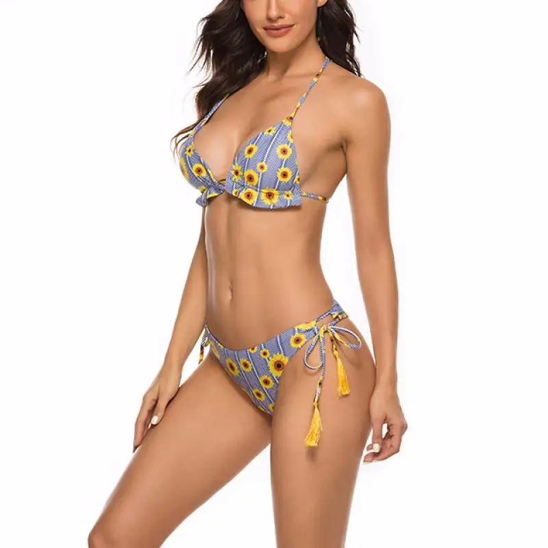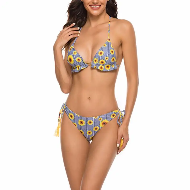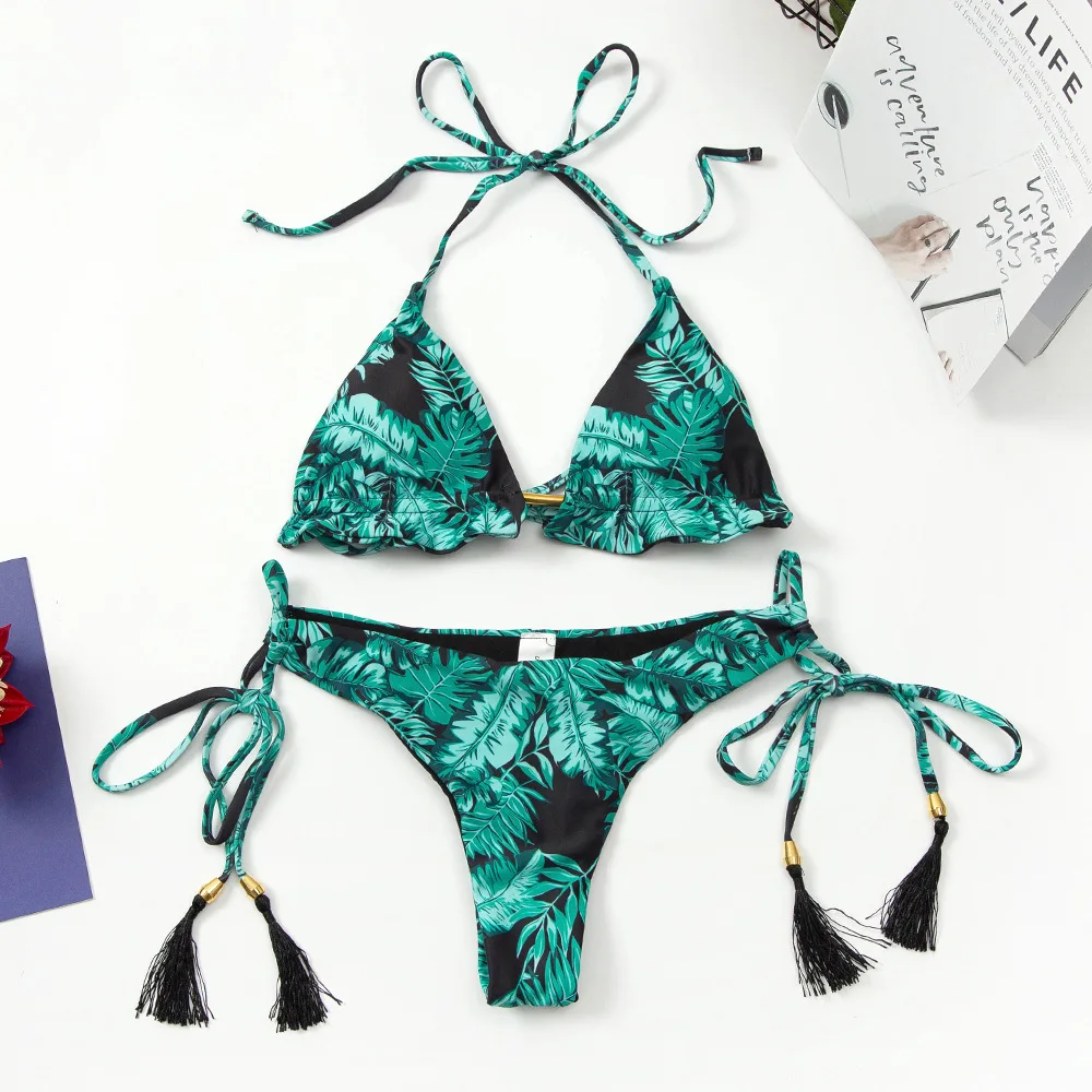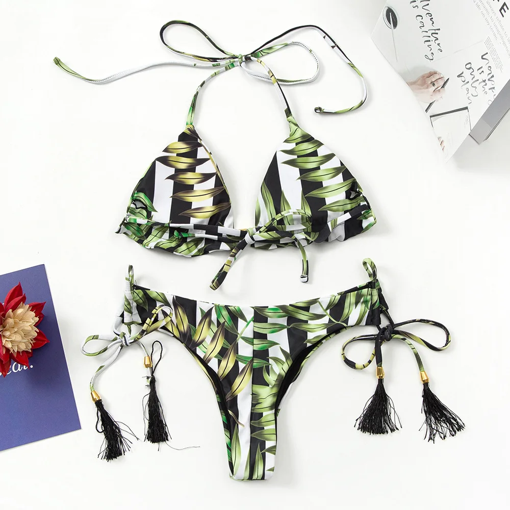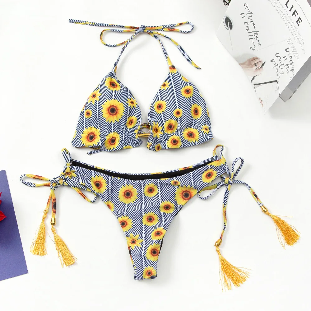 Новый сексуальный женский комплект бикини с цветочным принтом, купальный костюм из двух частей, купальник, пляжный костюм, Бразильский бикини, купальник, пляжный костюм