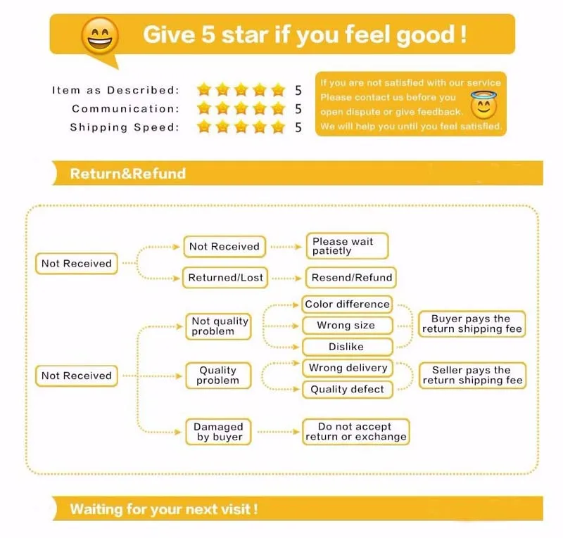 О времени общения: Рабочее время 9:00 до 18:00 по китайскому времени, вы можете связаться со мной, если у вас есть какие-либо вопросы. Я отвечу вам Описание сервировки: После подтверждения оплаты товар будет отправлен в течение 1-5 рабочих дней (на заказ требуется 7-10 дней). Обратите внимание, что срок доставки, указанный Aliexpress, является приблизительным и может отличаться в зависимости от расстояния Китая, а также таможенных правил. 1. Если вы удовлетворены нашими продуктами и услугами, пожалуйста, оставьте положительный отзывы и 5 звезд. 2. Если вы не удовлетворены нашими портами, пожалуйста, свяжитесь с нами, прежде чем оставить отрицательный отзывы или сделать подробную оценку. Мы гарантируем, что решим любую вашу проблему. Отзывы: 1. Ваши отзывы очень важны для развития нашего бизнеса 2. Пожалуйста, оставьте отзывы 4-5 звезд, если вы удовлетворены нашей продукцией 3. Пожалуйста, свяжитесь с нами, прежде чем оставить отрицательный или нейтральный вид Мы сделаем все возможное, чтобы решить любые проблемы. Спасибо за понимание 4. На все сообщения будет дан ответ в течение 1 рабочего дня. Если вы не получили Наш Повтор. Пожалуйста, отправьте ваше сообщение, и мы ответим как можно скорее По возможности
