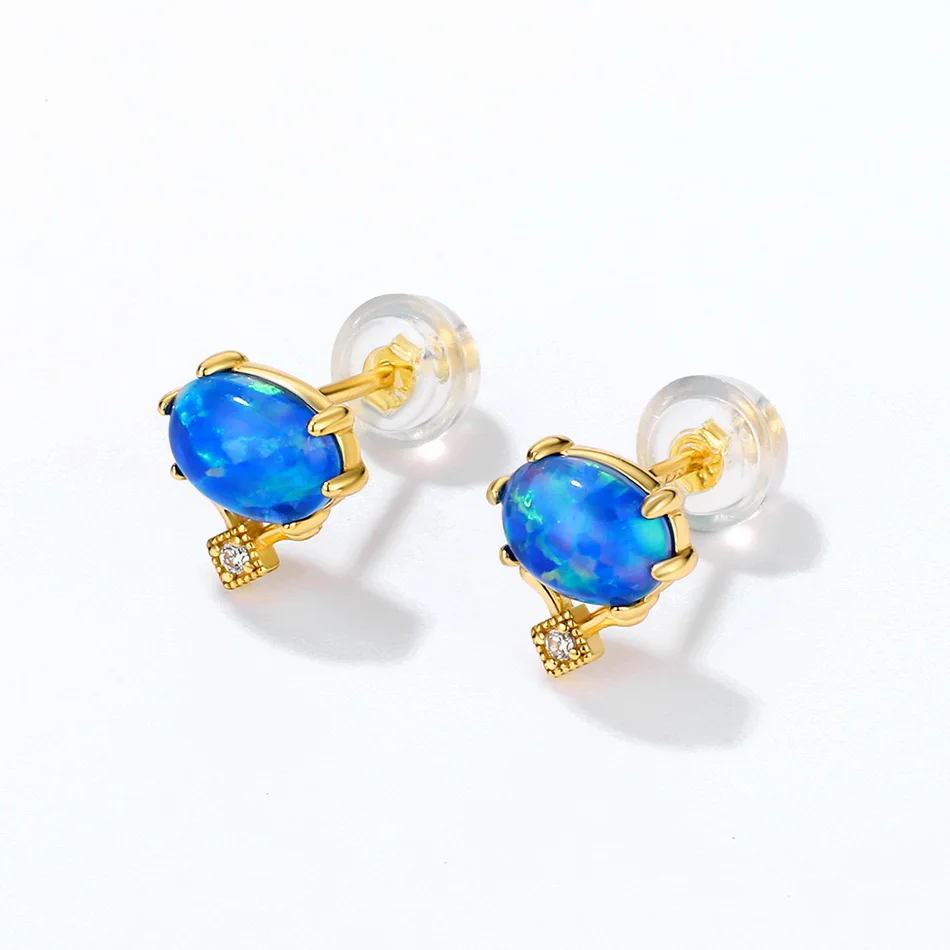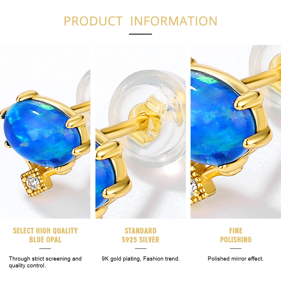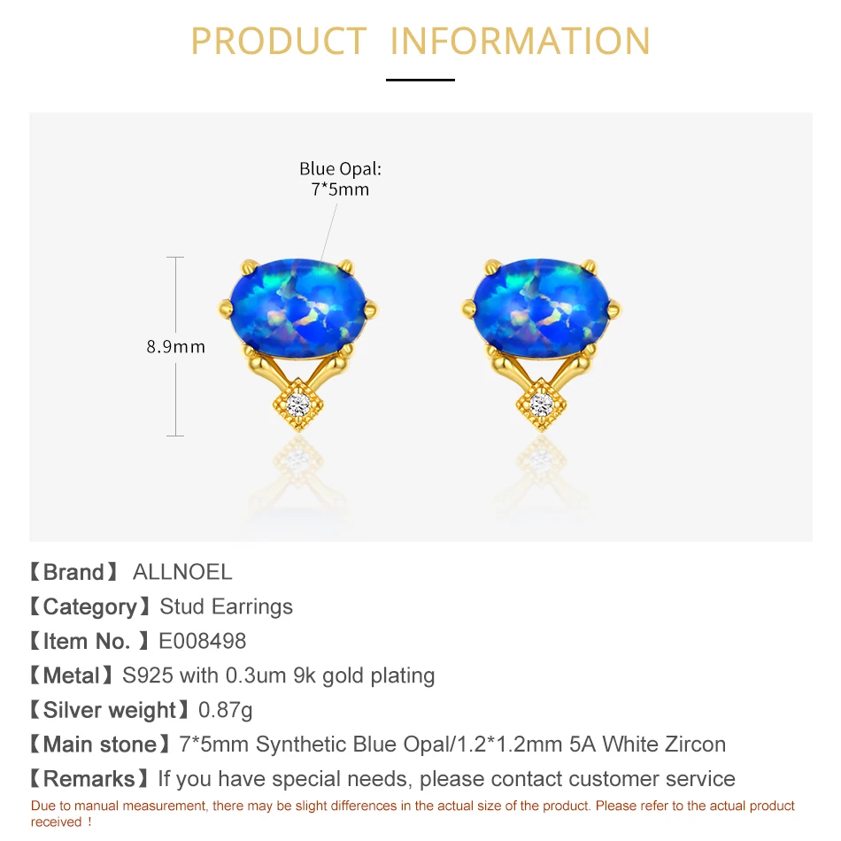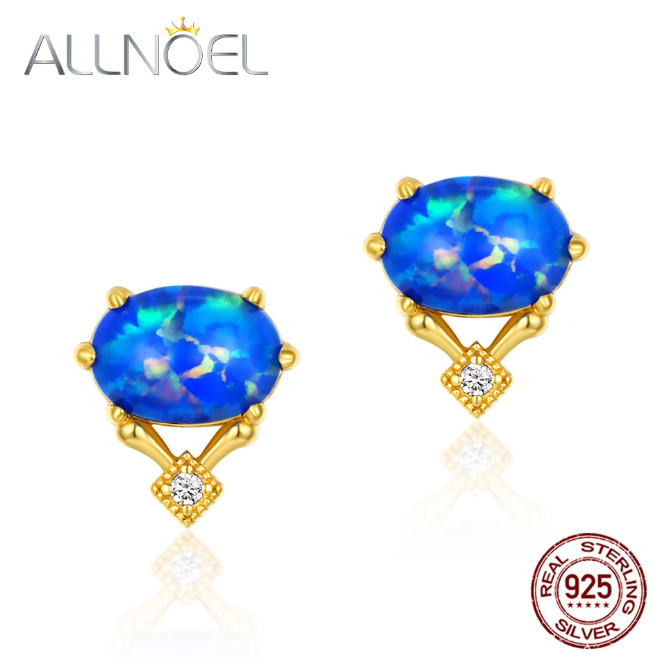 ALLNOEL, однотонные серьги из серебра 925 пробы, Овальный синтетический опал, циркониевые бриллиантовые серьги-гвоздики, хорошее ювелирное изделие, новый подарок, доставка
