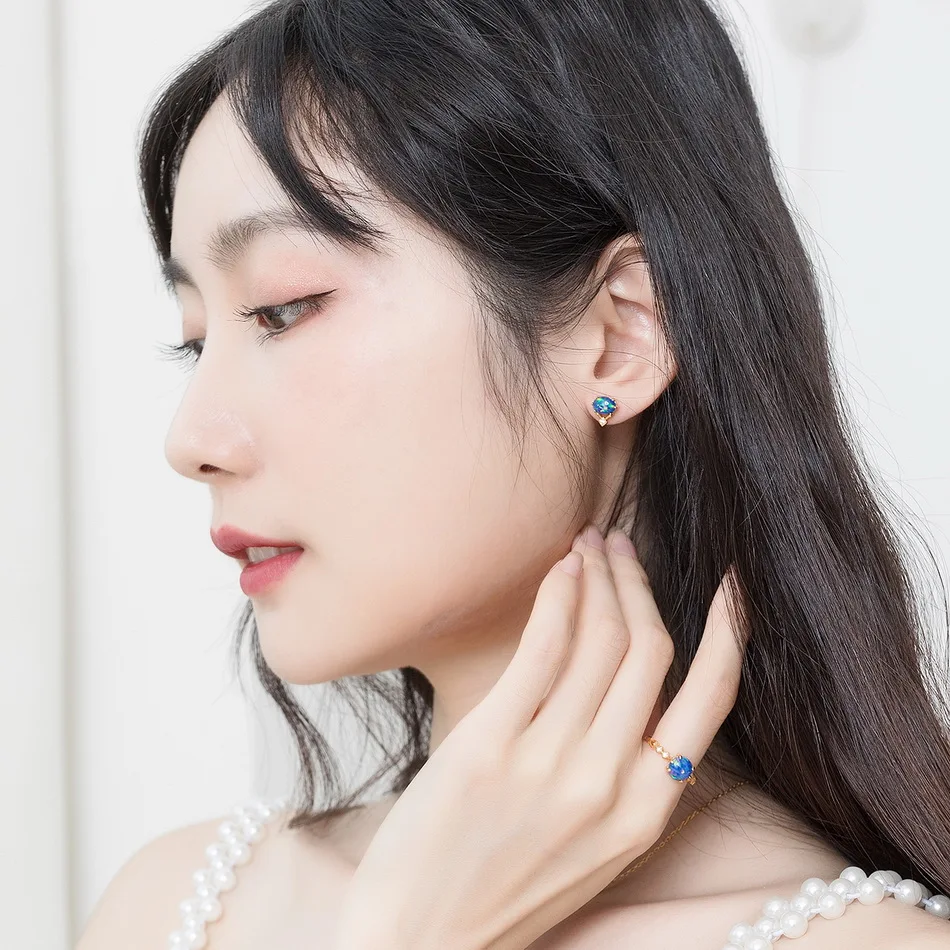 Основной камень: 7*5 мм синтетический синий опал/1,2*1,2 мм 5A белый циркон