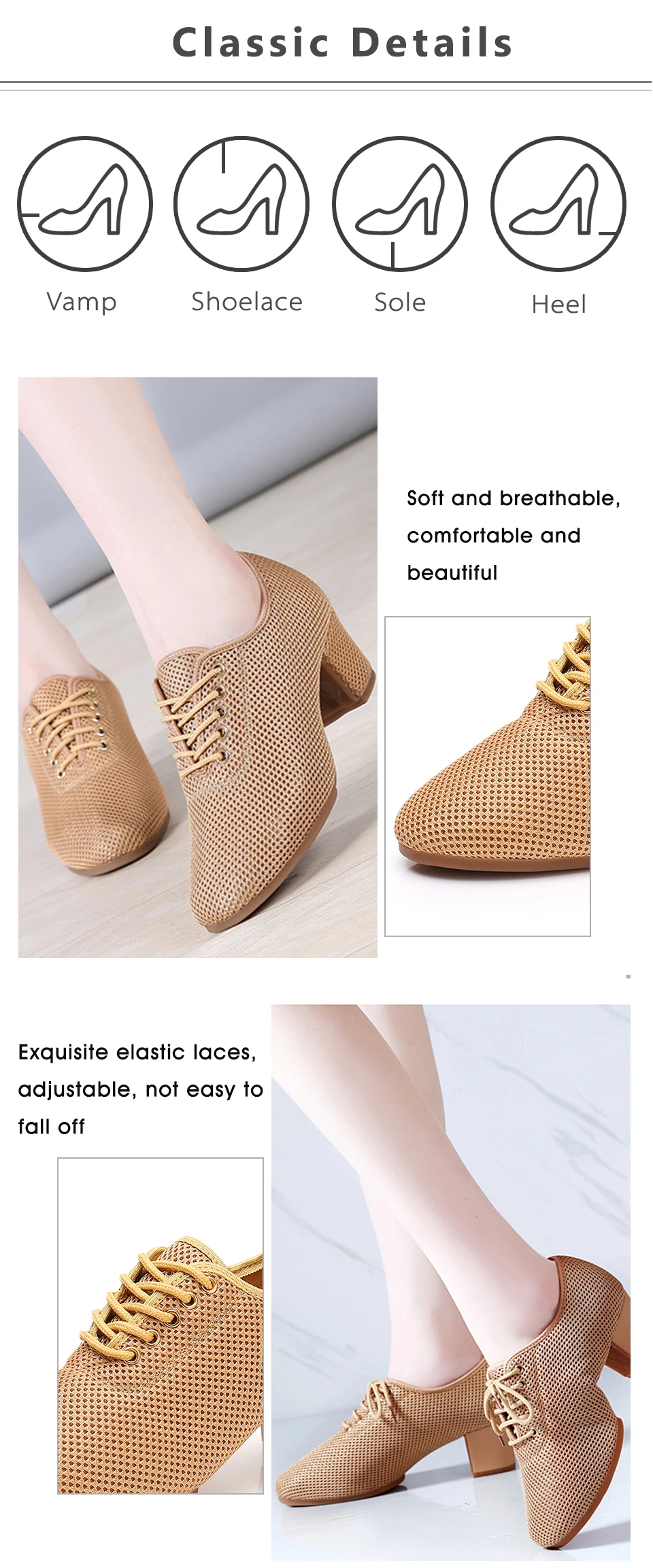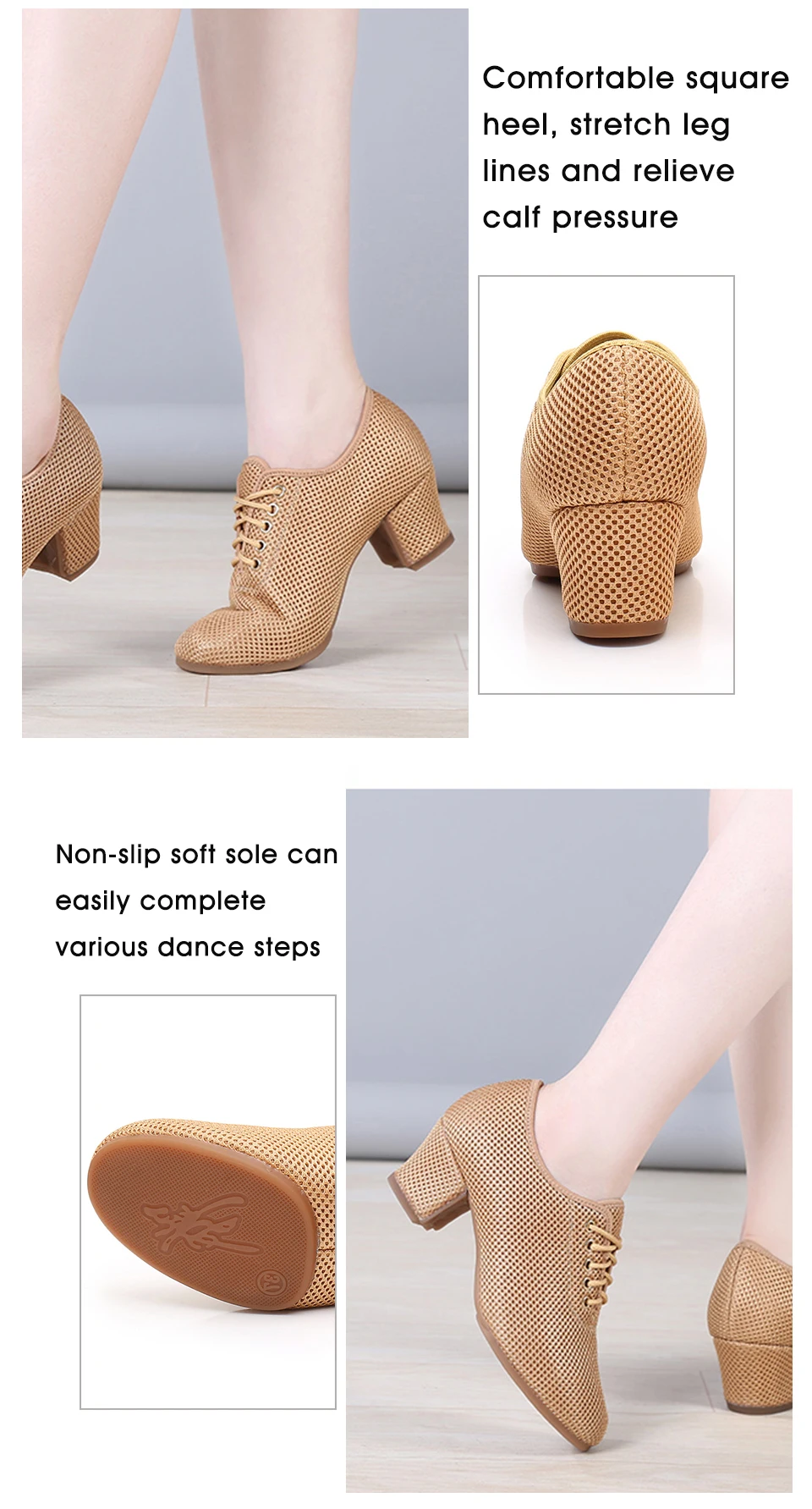 Женская танцевальная обувь; Цвет коричневый; Обувь для латинских танцев; Обувь для женщин; Обувь для бальных танцев; Современная танцевальная обувь для танго и джаза; Дышащая сетчатая обувь