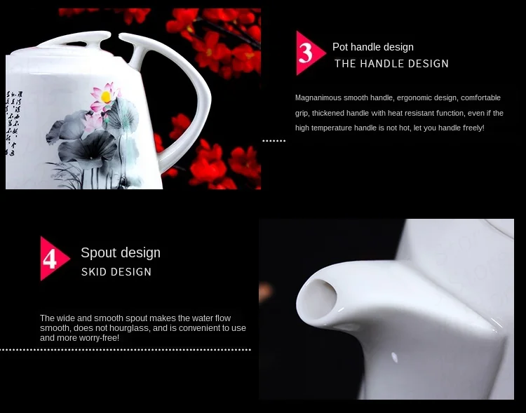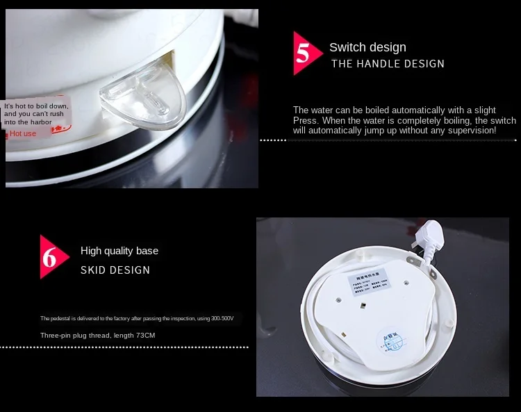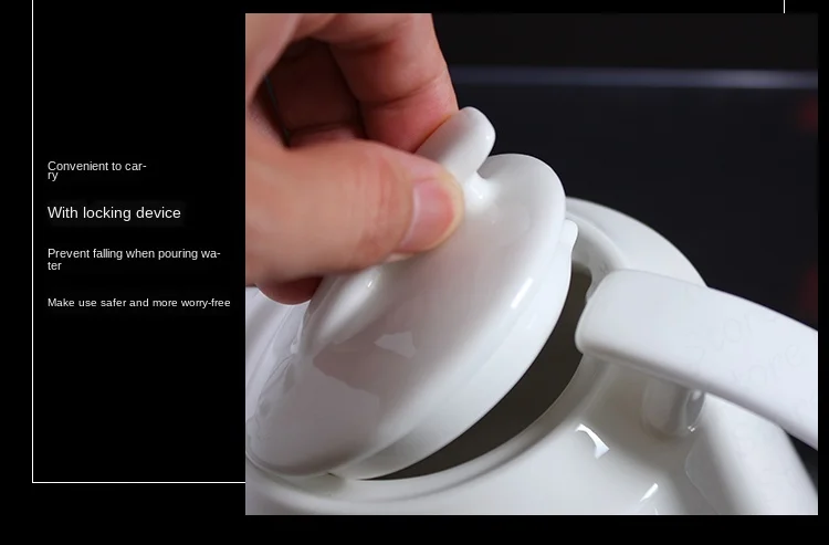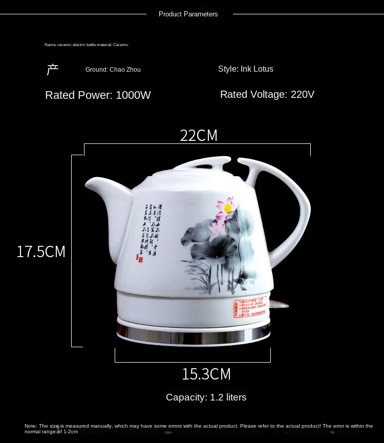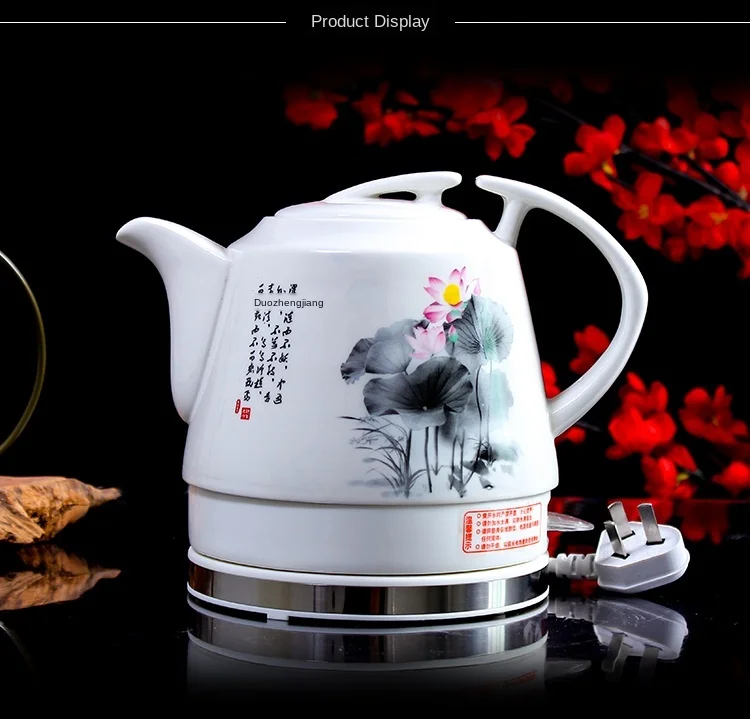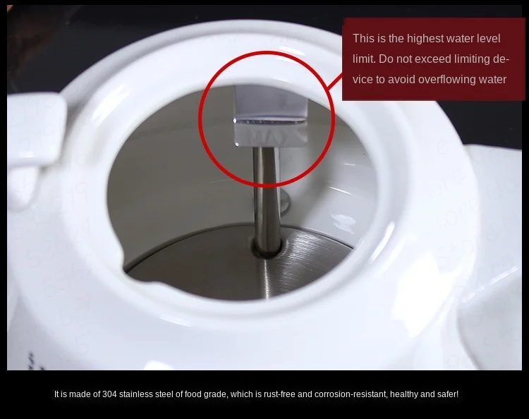 Керамический корпус электрического чайника изготовлен из высокотемпературной фарфоровой глины, тонкого фарфора, безсвинцового фильтра Wu, изготовлен из съедобной нержавеющей стали 304, без ржавчины, безопасного и здорового