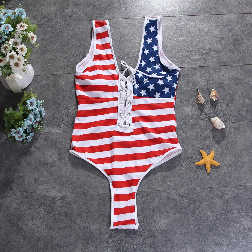 Женский купальник с американским флагом, свободный слитный пляжный купальник, монокини, бикини 4-го июля