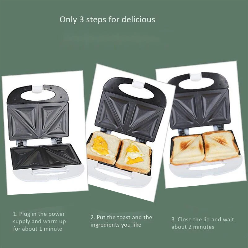 Perfectfor: 750W сэндвич toastier maker отлично подходит для изготовления 2 порций сэндвичей с двойными ломтиками фиксированных пластин.