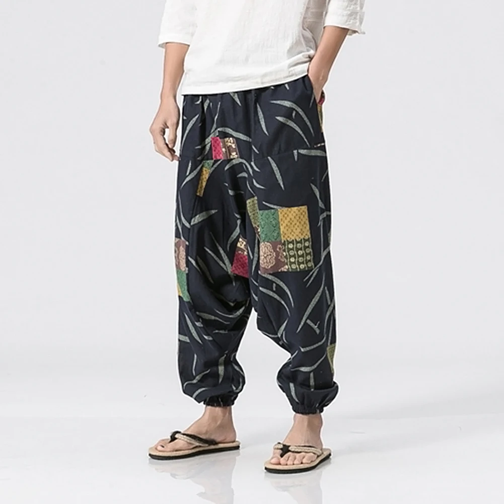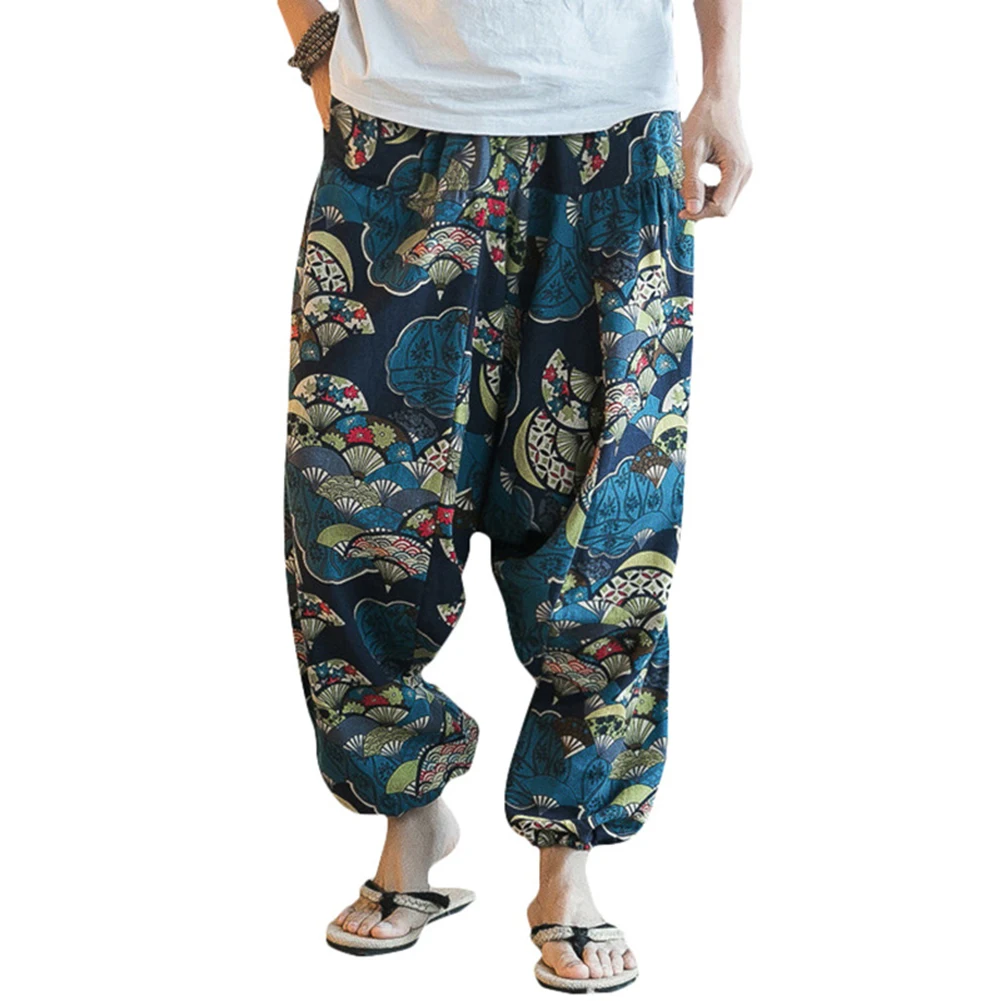 Модные мужские шаровары с цветочным принтом в стиле хип-хоп, широкие повседневные длинные брюки