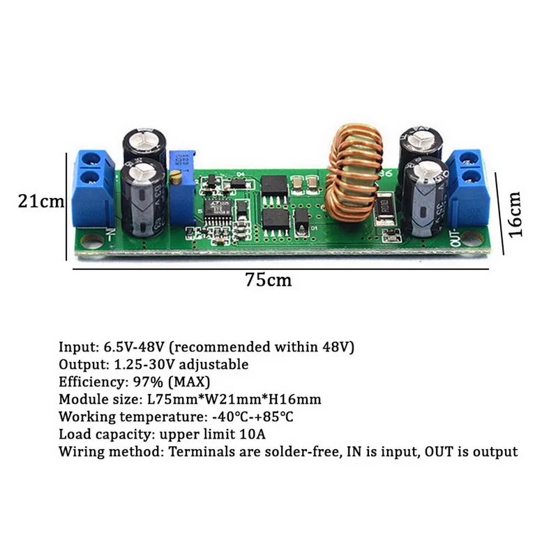 Вход: 6,5 V-48V (рекомендуем: не позднее, чем через 48V)