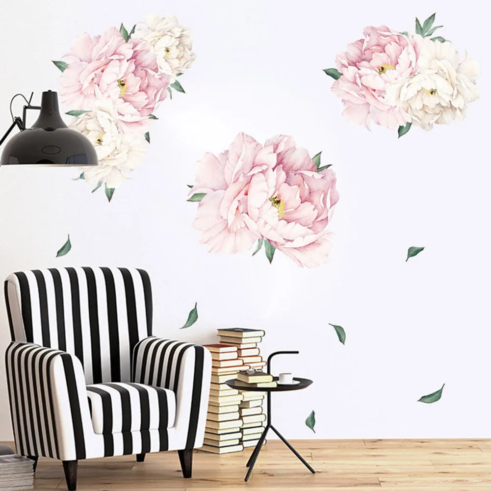 Красивый пион цветок самоклеющиеся настенные Стикеры для дома гостиной Прихожая наклейка