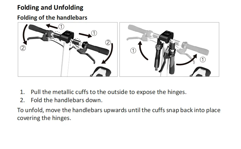 Чтобы развернуть, перемещайте руль вверх до тех пор, пока манжеты не защелкнутся назад и не разгладят петли.