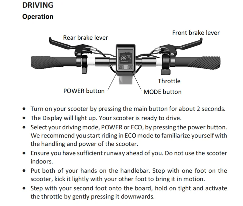 1. Нажмите кнопку питания около 2 секунд, чтобы включить скутер.