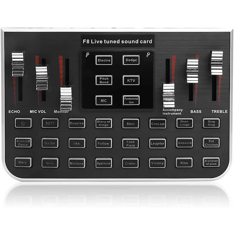 Звуковая карта F8 voice changer оснащена этими ручками, вы можете настроить и использовать эти функции в соответствии с вашими предпочтениями